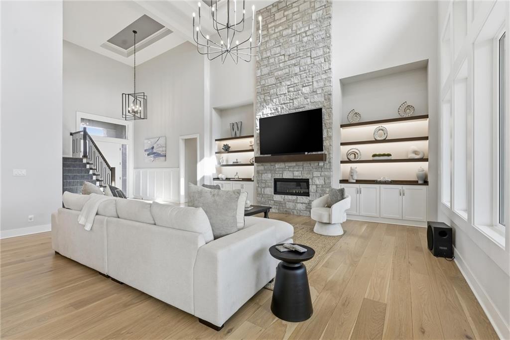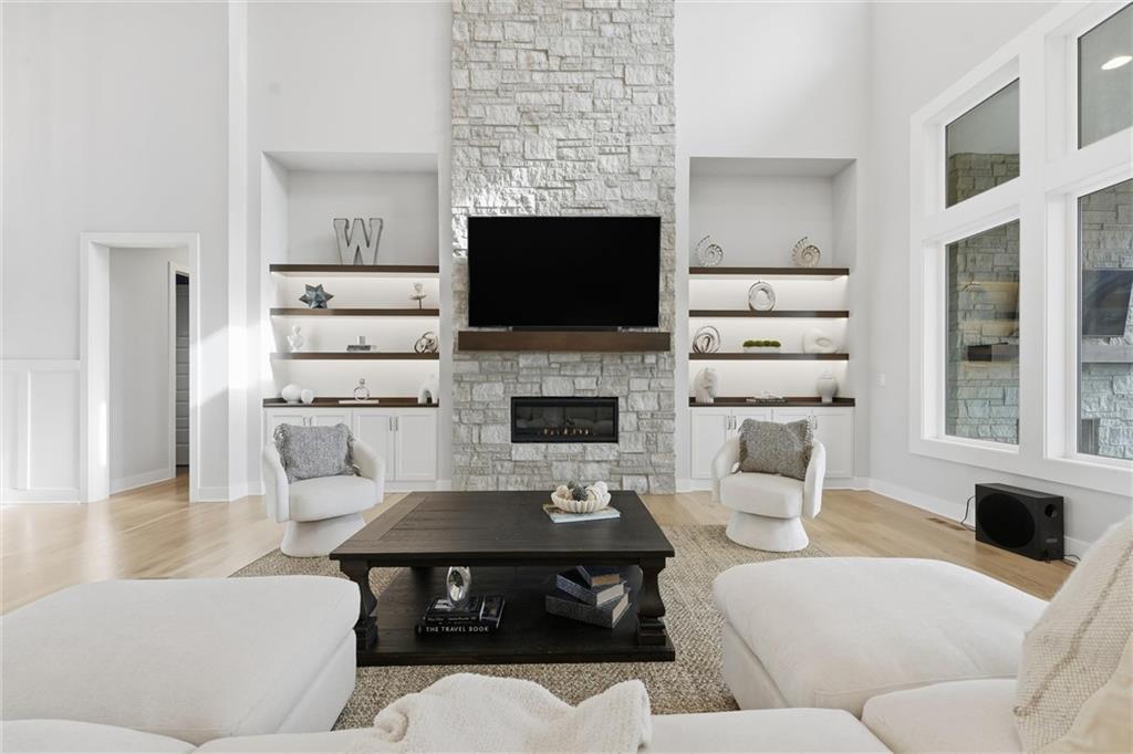 This exceptional 1.5 story home is where comfort, style, and functionality come together. 6 beds/6.1 baths + rare 4 car garage situated on quiet culdesac lot! From the moment you step inside, you’ll be captivated by the open-concept design, seamlessly connecting the kitchen, dining, and living areas—perfect for hosting lively gatherings or enjoying cozy evenings at home. The great room is anchored by an impressive floor-to-ceiling stone fireplace, while the chefs dream kitchen shines w/sleek SS appl., a spacious island, HUGE walk-in pantry and ample room to create culinary masterpieces. Just off the kitchen, a flexible bdrm or home office or playroom with a full bth offers the perfect retreat for guests or a quiet space to work remotely with creative statement wall. Practicality meets elegance with a spacious mudroom with built in boot niche that helps to keep life organized and a convenient half bath on the main level. Upstairs, all bedrooms are ensuite and generous in size, offer walk in closets plus share a useful multi-purpose loft and second convenient laundry. The SENSATIONAL finished daylight lower level is a haven for entertainment and relaxation, featuring a full handsome bar (w/ exotic granite) a cozy recreation room, a theatre room, game area an additional bedroom, another full bath and ample storage space. When you’re ready to enjoy the outdoors, step onto the charming screened-in porch with its inviting fireplace or head down to the lower patio to soak in the tranquil backyard views. This home truly has it all (coastal themed wallpaper, decorative trimmed out mirrors, contemporary courtyard garage doors & impressive treatment walls) Welcome to your dream retreat! Tons of upgrades and extras + value priced, the similar Bristol plan sold for 1.8 new construction across the street. WHY BUILD WHEN YOU CAN GET ALL THIS WELL UNDER REPRODUCTION PRICE? Come check out this masterpiece! Located close to the sub. pool & shops at BluHawk with easy highway access!