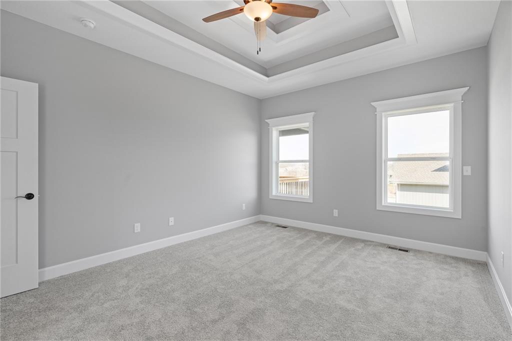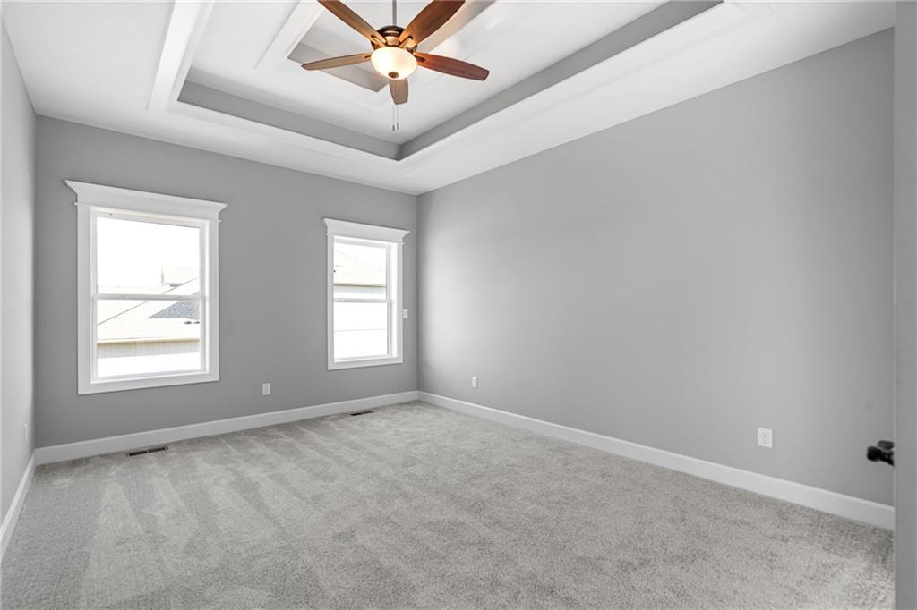 Welcome to Sara’s Meadow, an exciting new subdivision and home to The Drake by Hoffmann Custom Homes — a beautifully designed Reverse 1.5 Story that blends warmth, modern style, and smart construction. From the moment you walk in, this home is filled with natural light, soaring ceilings, and refined finishes throughout. The main level features gorgeous dark colored engineered hardwood floors and a chef-inspired kitchen showcasing light, light granite countertops, dark hardware, a gas cooktop and wall oven, enameled cabinetry, and under-cabinet lighting that makes the space shine — perfect for those who love to entertain! The great room is anchored by an eye-catching gray stone fireplace with enameled wood trim accents and opens seamlessly to the covered deck, ideal for relaxing. The main-level owner’s suite truly feels like a private retreat with a freestanding soaker tub, double vanities, and a generous walk-in closet. A second bedroom on the main floor makes the perfect nursery, home office, or guest space, along with a full bath and a conveniently located laundry room. Downstairs, the finished walkout lower level adds even more space with two additional bedrooms, a full bath, and a spacious rec room complete with a granite wet bar — plus walkout access to a covered patio and an oversized backyard that feels both peaceful and private. Thoughtfully engineered for modern living, this home includes 2x6 exterior wall construction, is prewired for solar panels, offers EV charger compatibility, energy-saving features, and comes backed by a 10-year structural warranty. If you’ve been waiting for the perfect blend of style, quality, luxury, comfort, and location — you need to come experience “The Drake” in Sara’s Meadow. This one is a showstopper!