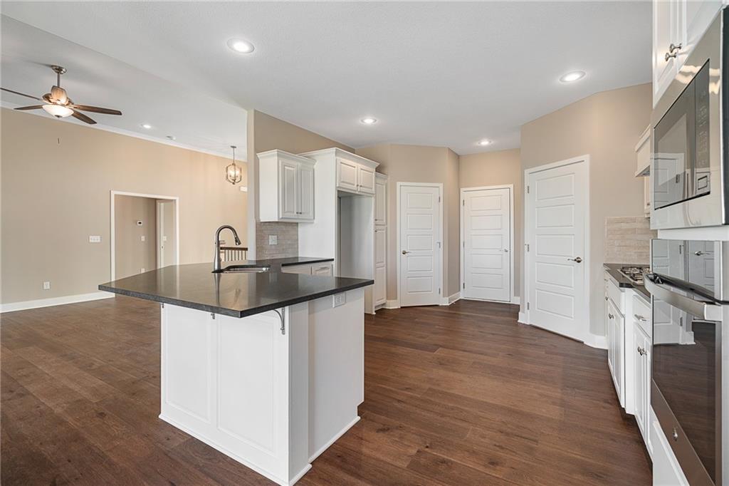 Welcome to Sara’s Meadow, an exciting new community where fresh construction meets timeless style. Introducing The Jordan by Hoffmann Custom Homes — a new gorgeous ranch style reverse 1.5 Story offering 4 bedrooms, 3 full baths, and a finished lower level, all wrapped in quality craftsmanship and smart modern design Step inside and you’ll immediately notice the difference — sunlight pouring in, soaring ceilings, and refined finishes that feel both elevated and welcoming. The main level is designed for effortless living and entertaining with rich espresso-toned engineered hardwood floors and a standout kitchen featuring black granite countertops, polished nickel finishes, a gas cooktop and wall oven, enameled cabinetry, under-cabinet lighting, and a walk-in pantry you’ll love! The spacious great room is warm and inviting, centered around a striking stone and wood fireplace that makes a statement without trying too hard. Your main-level owner’s suite is the retreat you’ve been waiting for — complete with a freestanding soaker tub, double vanities, a beautiful marble-style tiled shower, and a generous walk-in closet. Downstairs, the finished lower level adds room to spread out with an additional bedroom, full bath, and an oversized rec room with a wet bar — perfect for game nights, hosting guests, or creating your dream hangout space. Built for long-term comfort and efficiency, this home includes 2x6 exterior wall construction, is prewired for solar, offers EV charger compatibility, energy-saving upgrades, and is backed by a 10-year structural warranty for peace of mind. All of this is tucked inside the Staley High School attendance area, just minutes from city conveniences — yet still offering that “quiet country feel” everyone wants. Come experience The Jordan in Sara’s Meadow, you won't be disappointed!