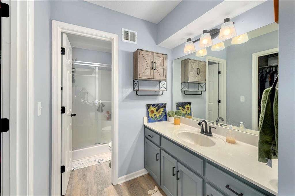 Life feels easier when home is simple, comfortable, and ready for you to enjoy. Tucked at the end of a quiet cul-de-sac in Iron Creek, this beautifully updated ranch in Basehor offers the kind of lifestyle many buyers are searching for right now. Vaulted ceilings and new flooring create an open, welcoming living space where mornings feel brighter and evenings feel relaxed. The updated kitchen with quartz countertops and stainless steel appliances becomes the natural gathering place, whether it’s weekday meals or weekend get togethers. The main level layout supports everyday living with a private primary bedroom and stylish en suite bath, plus two additional bedrooms nearby for family, guests, or a home office. Downstairs, the partially finished basement adds flexibility with a fourth bedroom and room to create a second living area, workout space, or playroom. Outside, the fenced backyard invites quiet evenings, space for pets, and room to unwind, with a storage shed ready for hobbies and projects. This is a home designed for a balanced lifestyle, offering comfort, updates, and room to grow, all in a peaceful neighborhood setting close to everything Basehor has to offer.