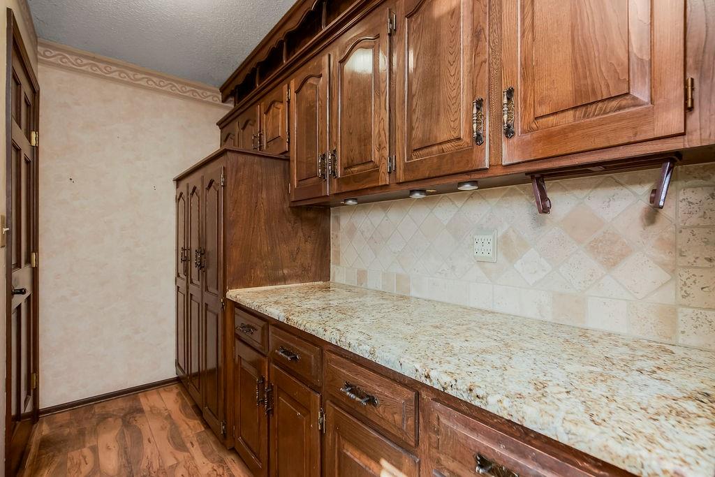 Welcome to this spacious 4-bedroom, 3-bath true ranch tucked away on a quiet cul-de-sac and backing to peaceful greenspace in a sought-after lake community. The large, private yard offers a serene setting that’s hard to find. The main level features vaulted ceilings, a kitchen with granite countertops, main-floor laundry, and brand-new carpet throughout the entire home. Three bedrooms and two full baths are conveniently located on the main floor. The walk-out lower level adds even more living space with a fourth bedroom, full bath, fireplace, wet bar, and expansive rec/bonus room—ideal for entertaining, hobbies, or flexible living needs. Enjoy the potential for outdoor living with space for a future back deck overlooking tranquil greenspace and private views. Please note: the deck will need to be replaced; the home is priced accordingly. With generous square footage and three true garage spaces, there is ample room for storage and workspace. The extended driveway and rear parking area are perfect for boat or RV parking, additional vehicles, or a workshop setup in the third garage. Located in the desirable Glen Lakes community offering lake privileges, fishing, and nearby walking trails, this well-maintained home presents an excellent opportunity for sweat equity in an exceptional setting.
