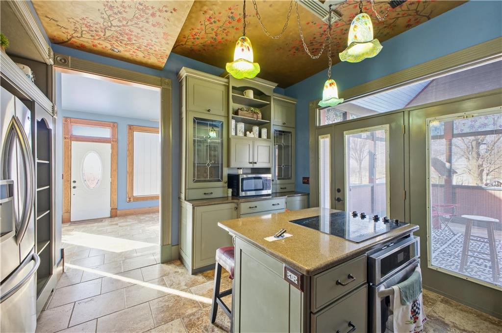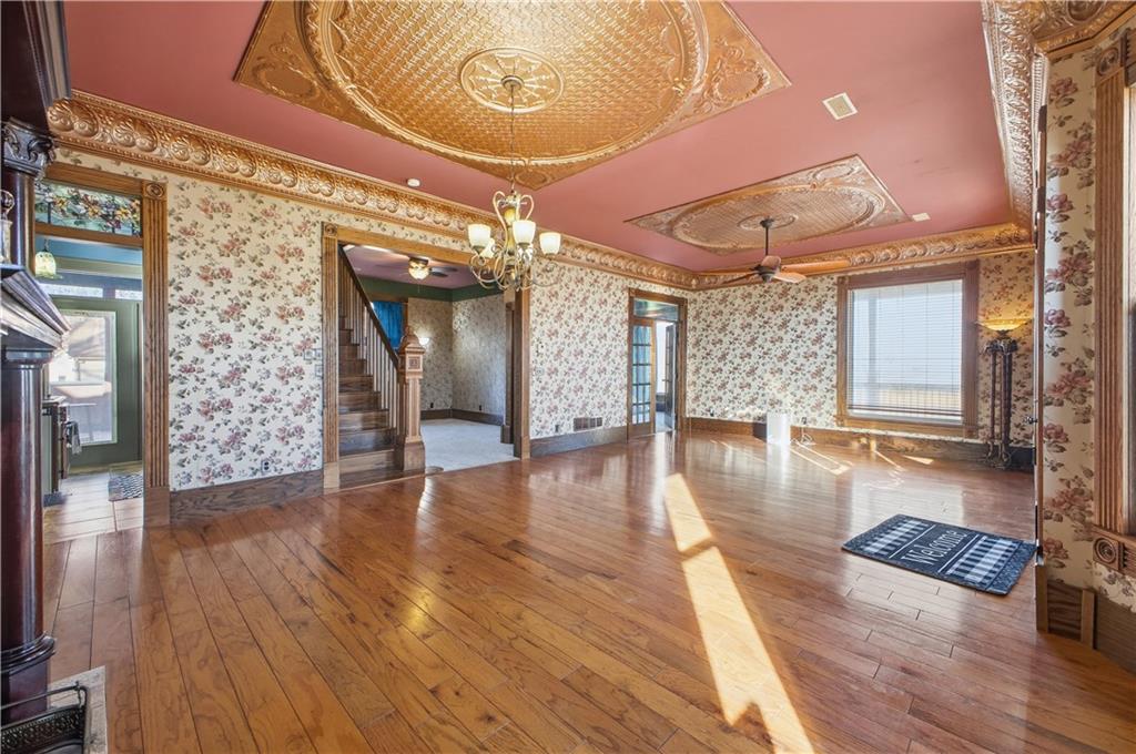 As you approach the property, the first glimpse of this beautiful home instantly draws you in with its timeless charm and inviting wraparound porch. Completely redone down to the studs, this home blends historic character with modern updates. It offers beautiful painted ceilings, ornate lighting, and crown molding. Step inside and you’re welcomed by a stunning sunroom filled with natural light—it truly takes your breath away and sets the tone for the rest of the home. The beautiful staircase immediately catches your eye, while the spacious living and dining rooms feel warm and cozy thanks to the fireplace and rich hardwood floors that perfectly complement the space. The kitchen is truly a cook’s dream, featuring quartz countertops, custom-built maple cabinets, and beautiful tile flooring. Just behind elegant French doors is the main-floor bedroom, showcasing even more of the thoughtful details throughout the home. A full bathroom is conveniently located just off the sunroom. Upstairs, you’ll find a cozy sitting area with its own fireplace—perfect for relaxing. This level also includes three bedrooms with one currently serving as a walk-in closet. A full bathroom completes this level, featuring double vanities, a jetted tub, and a separate shower. Each room is just as lovely as the next. Outside, the property continues to impress with a large 55’ x 40’ shop featuring concrete floors, water, sewer, 220 electric, two built-in rooms, one 14-foot door, and two 8-foot doors. The yard is enclosed with a privacy fence. The roof was replaced approximately five years ago. Situated on 1 acre (mol) in a convenient location close to Saint Joseph, Maryville, and Savannah. This home truly has it all—beauty, character, and history. You won’t want to miss this one. Schedule your showing before it’s gone!