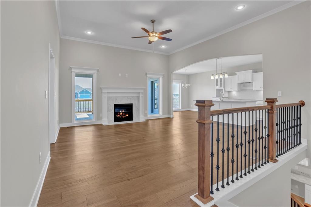 The Sierra is a beautiful reverse 1.5-story home designed with comfort, style, and functionality in mind. The open main level features rich hardwood flooring, 9-foot ceilings, and a seamless flow throughout the living, kitchen, and dining areas. The gourmet kitchen showcases an impressive oversized island, under-cabinet lighting, and gas plumbing for the range—perfect for both everyday living and entertaining. The dining area opens to a covered deck, ideal for relaxing or hosting guests. The elegant primary suite offers a spa-inspired bath and a spacious walk-in closet, creating a serene retreat after a long day. The finished walk-out lower level includes two additional bedrooms and a large rec room, providing plenty of flexible living space. Additional features include recessed lighting in the living room, a dedicated freezer circuit in the garage, and a zoned irrigation system for easy maintenance and convenience. HOA takes care of lawn, snow removal, and maintenance of sprinkler system. Home is currently in the Finishing Stages of construction - Check back in for status updates on the construction of this stunning new build! Photos are stock photos of plan and virtual tour is simulated; finishes may vary.