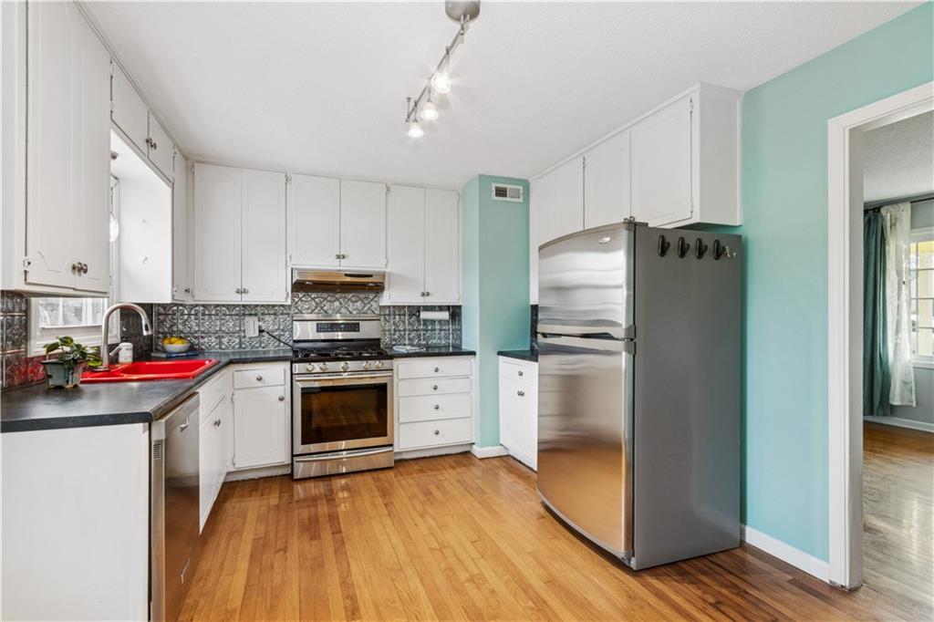 Location, condition, and convenience come together in this move-in-ready ranch in the heart of Overland Park. This 2-bedroom, 1-bath home offers easy one-level living with hardwood floors throughout in excellent condition and an inviting, light-filled layout. The kitchen features stainless steel appliances, a gas stove, and all appliances stay—including washer and dryer. Major updates include a 1-year-old roof (2025), updated windows, PEX plumbing, and a crawl space for easy access and peace of mind. Outside, enjoy a huge fully fenced yard, large driveway, and garage with operator—ideal for entertaining, pets, or everyday living. Smart-home features include a Nest thermostat, SimpliSafe security system, Ring doorbell, Nexx app-controlled garage door opener, and Google Fiber. All of this in an incredible Overland Park location close to shopping, dining, parks, and highways. A rare combination of charm, updates, and location—this one is an easy yes.