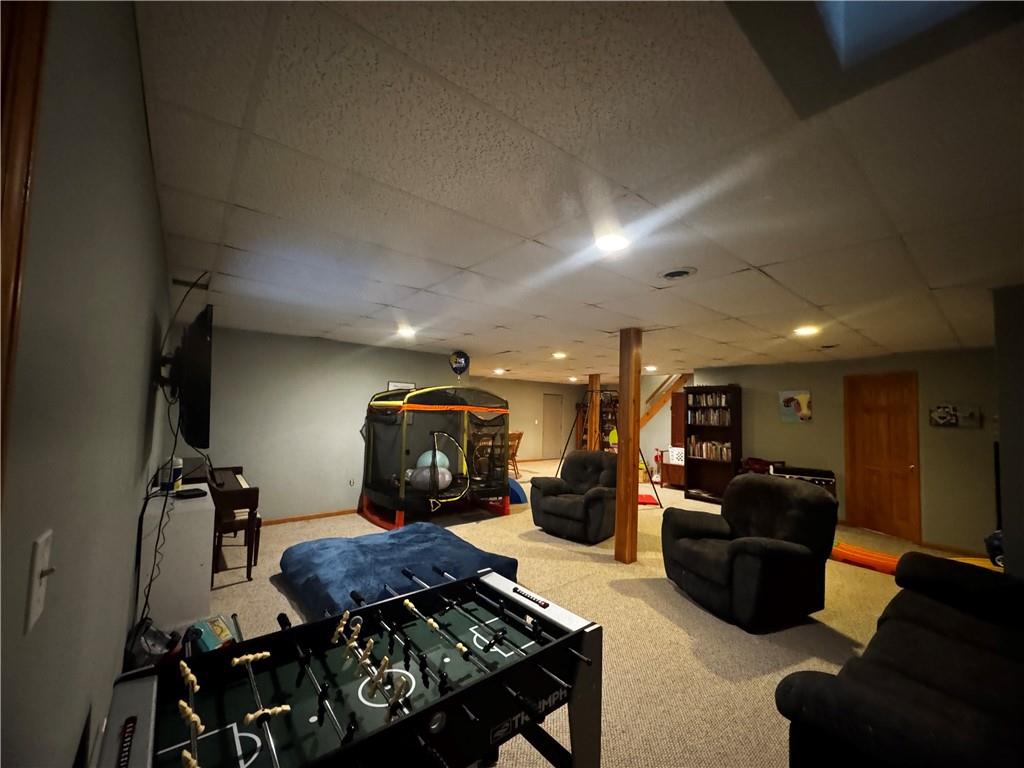 Welcome to your country dream home set on 10 picturesque acres, offering space, privacy, and endless possibilities. This spacious home features an open living plan with a cozy living room highlighted by a wood-burning fireplace. The charming country kitchen includes a newer cooktop and fridge a must-have pantry, and flows seamlessly into a large dining room, all leading out to a generous deck—perfect for outdoor entertaining and enjoying the above-ground pool. The main level offers three comfortable bedrooms, including a primary suite complete with a walk-in closet and private bath for added convenience. Upstairs, you’ll find a versatile multipurpose room that can serve as a den, office, or additional bedroom. The basement provides exceptional additional living space, featuring an extra-large family/media room with a full bath, a safe room for added peace of mind, and a workshop area with an overhead garage door offering easy access to the beautiful yard. Outside, this property truly shines with a pond, chicken coop, goat shed, three-sided shed, raised garden beds, grapevines, fruit trees, and five-strand barbed-wire fencing that is livestock-safe with a smaller pen. Additional gravel parking spaces add convenience, while the long, winding, tree-lined driveway provides privacy and a welcoming entrance. Recent updates include a roof that is only 1.5 years old, new paint, and new windows and doors. Enjoy peaceful mornings and stunning countryside views from the covered front porch.