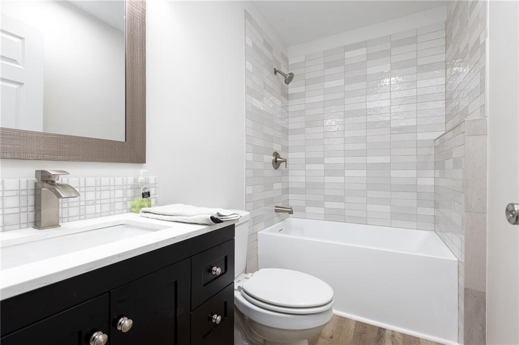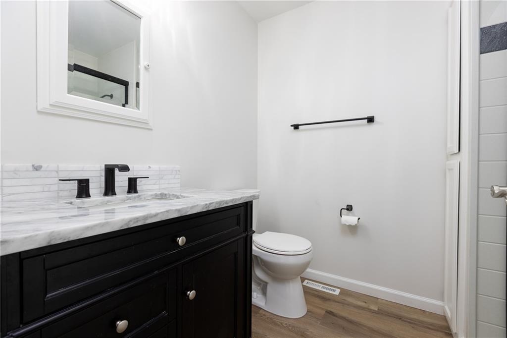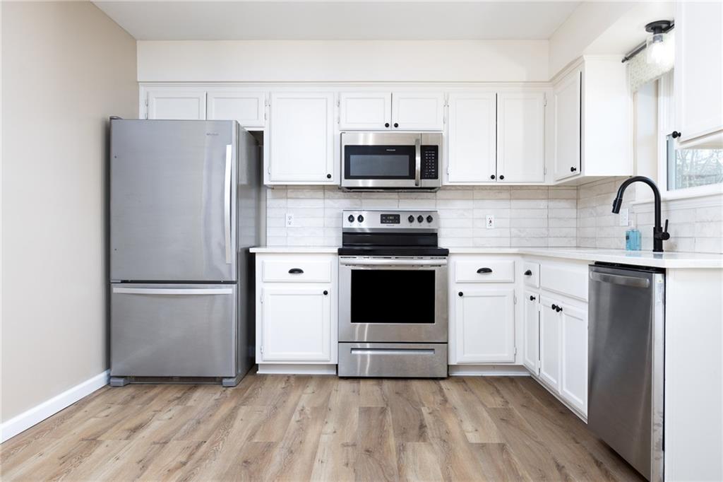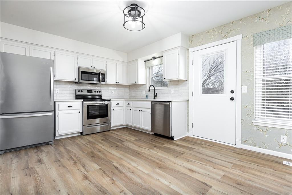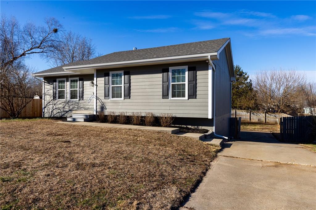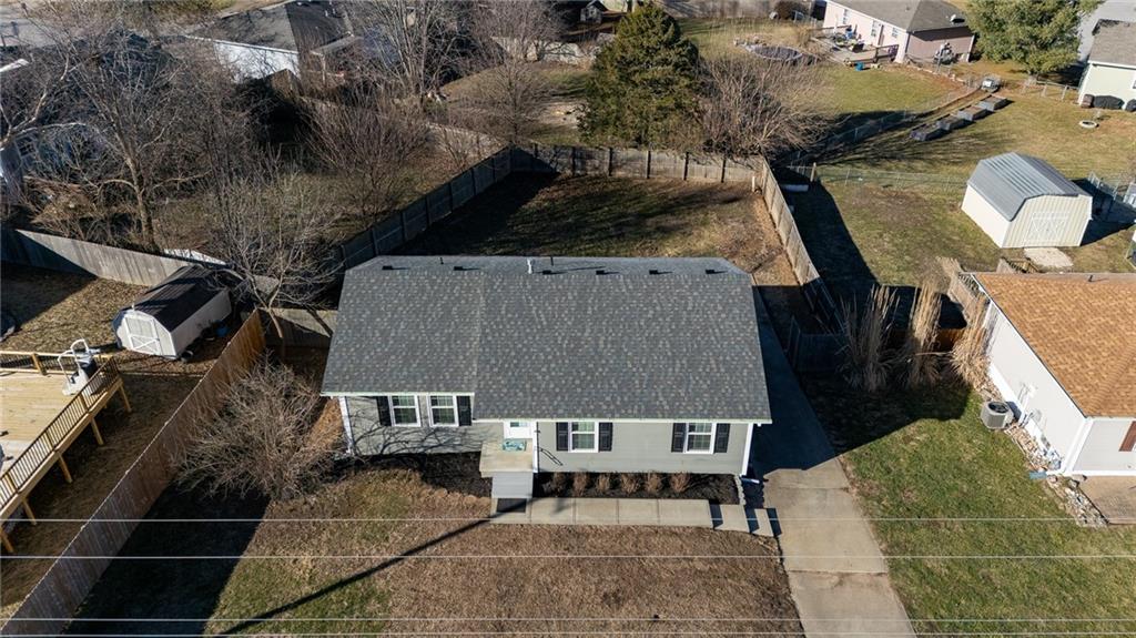 Move in ready, Kearney raised ranch. 3 bed room two full baths and stubbed for a full third bath in unfinished basement. Deep two car rear entry garage, full privacy fenced back yard. Remodeled featuring: New roof and gutters in Oct 2025, all flooring removed to original subfloor and replaced with Luxury Vinyl Plank and carpet. New dishwasher, full interior paint and recent exterior paint. New hot water heater. New quartz counter top and backsplash. New soaker bath tub/shower installed in primary bedroom bath and new vanity and stool. Deck pressure washed, sealed and stained. All windows and doors on main level replaced 2022, furnace and air replaced 2018, and hall bathroom updated in 2023.