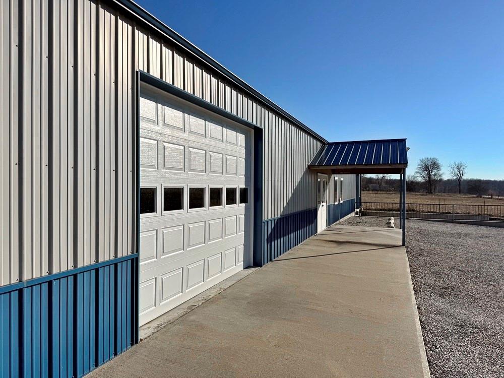 5,000 Sq Ft Metal Building on 1.72 Acres in Cedar County, MO. Flexibility and multi-use are the best descriptions of this 2017, 50’x100’ metal building that has been used as a commercial location. The mostly-open floor plan features a show-case room, office, ½ bath, and storage/docking side allow for this property to be used for most commercial purposes. The property offers 1.72 acres of mostly open yard space, fencing on 2 sides, fully surveyed, established signage, rural (public) water, fiber internet available, septic, 10,000 sq ft of gravel parking space, and paved-road frontage. The building showcases a 2-tone color, with a 9’x60’ front concrete apron, 4’+ loading dock, (1) 9’x12’ overhead door, (2) 9’x9’ overhead doors – lined up for pull through access, (1) single-entry pedestrian door, (1) double-entry pedestrian door, (3) windows, washer and dry hookup, PEX plumbing, electric hot water heater, CH/CA electric heat pump, LED lighting, 60’ of built-in wooded shelving, 10’3” ceiling height throughout, 200-AMP panel, and (2) 220V exterior plugs. Not only is this property turn-key for commercia, but one could convert this property to a home and finish half for a residence and the other half leave as a large, attached garage. To get an appreciation for the size of this building, we have included pictures of the building most empty, but also with 2 vehicles and a large pontoon boat sitting in the showroom (and there was still lots of space available). New construction costs have skyrocketed over the past 5 years especially on buildings this size. This property has the land, utilities, and structure already in place without waiting in line for a new-build. This property is located about 5 miles southwest of El Dorado Springs and 15 miles east of Nevada, Missouri on the Cedar/Vernon County line. Make plans for a private tour today!