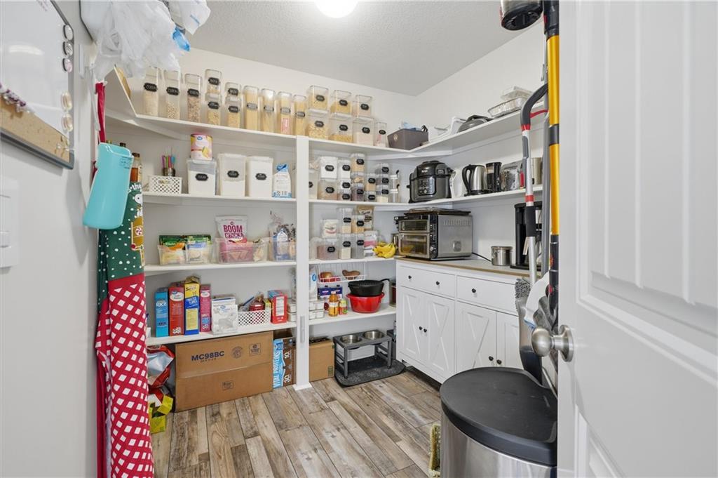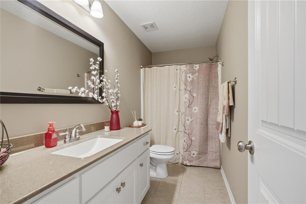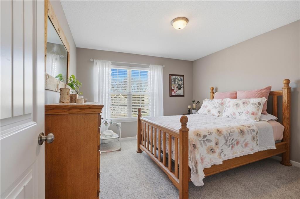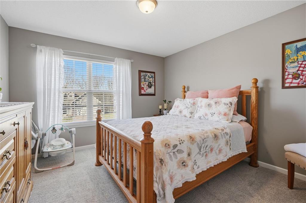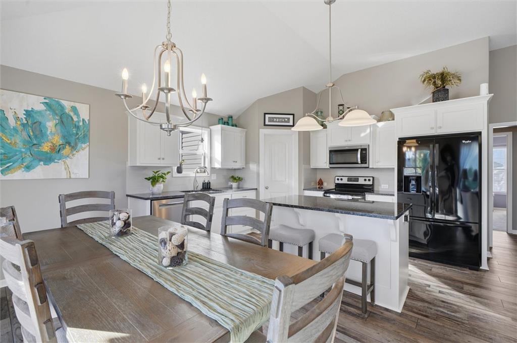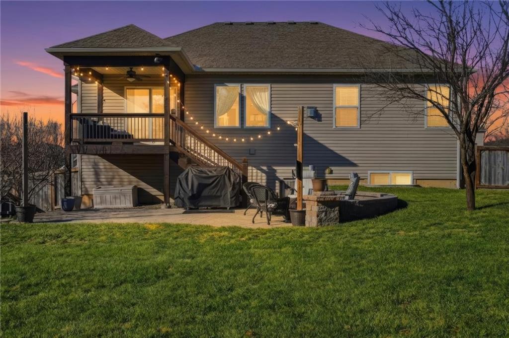 Wide stair entry enhances the curb appeal of this Kansas City address located in the desirable Smithville School District. Step into a spacious entry leading to a light-filled great room with fireplace and an abundance of windows. The open layout flows seamlessly into the kitchen, featuring a granite island with seating, walk-in pantry, tile backsplash, hardwood floors, and an expansive dining area that opens to the deck—perfect for entertaining. The primary suite offers a vaulted ceiling and a luxurious ensuite bath with onyx finishes, double-sink vanity, tile-surround tub, separate shower, and walk-in closet. The finished lower level includes a large family room anchored by a striking dark accent wall with custom slat detailing that defines the entertainment space, plus a bedroom and full bath. A wainscot-accented entry bench off the garage adds both function and style. Outdoor living shines with a freshly stained covered deck, an amazing stamped patio, and a large fenced yard. Enjoy access to the neighborhood pool, adding even more value and convenience for summer fun and community living. FAST AND EASY 435 access