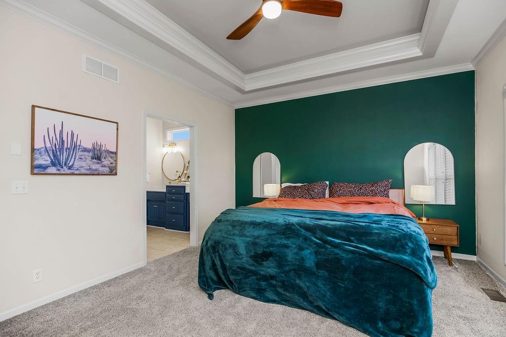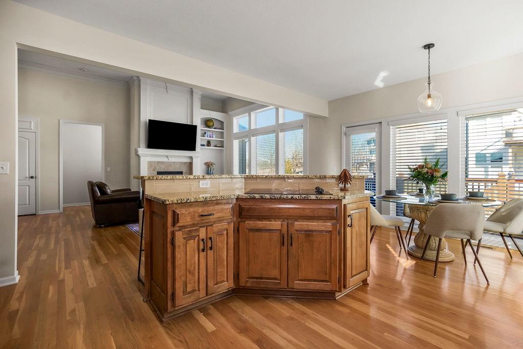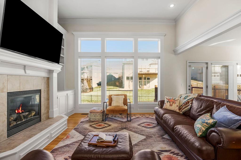 Beautiful 4-bedroom, 4-bathroom ranch home with a 3-car garage in the sought-after Staley Farms neighborhood. This home features a bright, open floor plan with hardwood floors throughout the main living, kitchen, and dining areas, anchored by a stunning fireplace with built-in cabinetry. Large windows fill the space with natural light, creating an airy and inviting feel. The dining and family area opens to an upper-level deck with stairs leading down to the yard-perfect for entertaining or enjoying outdoor living. The finished lower level offers additional living space with hardwood floors, ideal for a rec room, media area, or guest retreat. A thoughtfully designed layout, quality finishes, and a prime location makes this home a must-see.