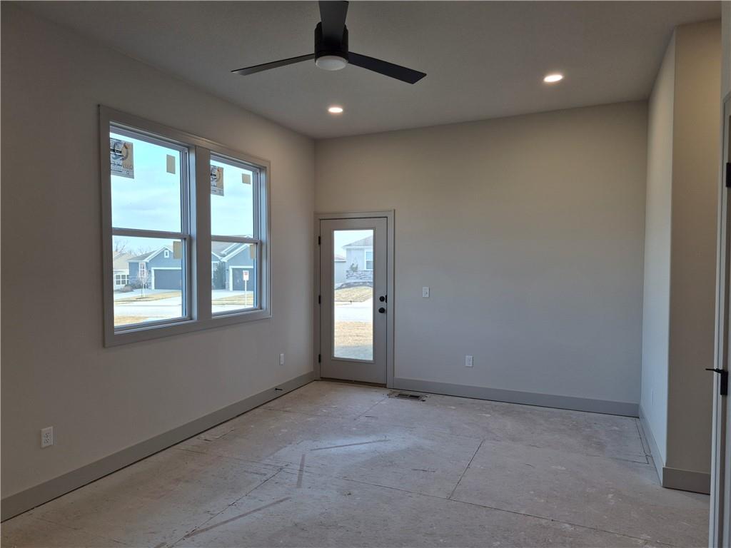 Lot 17R Legato. Check out this ENERGY EFFICIENT home with a HERS rating of 50! And in a GOLF COURSE community! Fox Block insulated concrete forms make this home energy efficient from the ground up. Also included are a 95% efficiency furnace, higher than typical wall insulation This home provides an oversized garage and amazing pantry you can load straight from the garage! Open Living Room, Spacious Kitchen and Breakfast Area with quartz counter and Island. Huge walk in pantry. Nice Primary bedroom and Bath Suite. Large walk in closet. Lower Level has a family room, 2 bedrooms, full bath. Tons of storage. HOA provides lawn and landscape maintenance, snow removal, and replacement of roof, gutters and paint as needed. Neighborhood pool, play area and basketball and pickleball/tennis courts included as well. Excellent schools, good highway access for easy commute to all parts of the city! 10 minutes to The Legends and 30 to the airport, downtown and Lawrence!