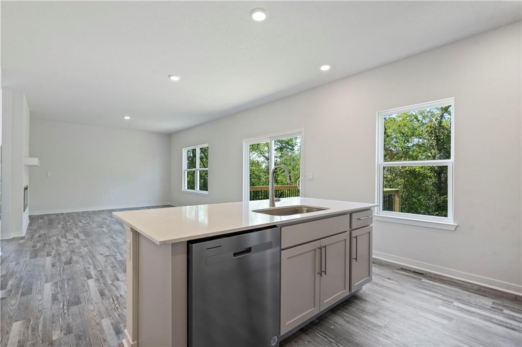 Discover a home where modern elegance meets everyday convenience, nestled in the heart of the Woodland Crossing community. Built by D.R. Horton, this stunning residence combines superior craftsmanship with the latest in-home design, creating a space that’s as functional as it is beautiful. The exterior of the home is nothing short of impressive, featuring James Hardie® siding with board and batten and stone accents. A stylish insulated front door not only welcomes you warmly but contributes to the home’s overall energy efficiency. As you step inside, you’ll be greeted by 9-foot ceilings that lend a spacious feel to the living areas. The gourmet kitchen, equipped with 36-inch painted maple cabinets, quartz countertops, and a suite of Whirlpool® stainless steel appliances, is perfect for both everyday meals and entertaining. The bathrooms are designed to be your personal sanctuary, with features like quartz-topped vanities, Moen® Chrome Faucets, and spacious showers creating a serene retreat from the hustle and bustle of daily life. This home is also equipped with cutting-edge Smart Home technology. Control your environment effortlessly with a Honeywell® Pro Z-Wave® Thermostat, Amazon Echo, and a connected home panel, all designed to make your life easier and more comfortable. LED lighting throughout the home, and energy-efficient insulated windows ensure that this home is as practical as it is beautiful. From luxury vinyl plank flooring to a garage complete with an opener(s), every detail in this home has been thoughtfully considered. The dual data/TV lines in the main bedroom and family room demonstrate a commitment to convenience and modern living. D.R. Horton’s attention to detail and dedication to quality are evident in every corner of this home. Don’t miss the opportunity to own this exceptional property in Woodland Crossing. Schedule a tour today and see for yourself why this home is the perfect blend of luxury and convenience.