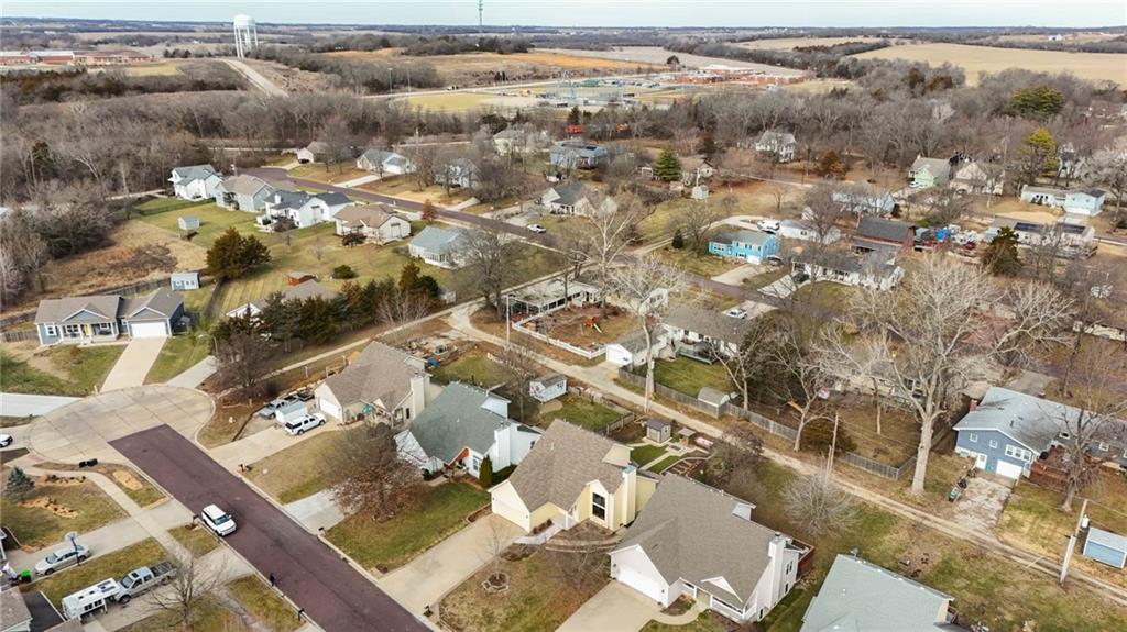 Welcome to this impeccably maintained, 4 bedroom, 3-1/2 bath home located on a beautifully landscaped lot in Baldwin City. This property has had a multitude of updates over the past several years, including a newer furnace, ac, hot water heater, water purifier/softener, kitchen appliances, back-up generator, Renewal by Anderson windows on upper stories, plus landscaping, hardscaping, and a shed, just to name a few. The home features a large, open living room and dining room complete with a fireplace, vaulted ceiling, beautiful picture windows with ample natural light, and provides a perfect space for large gatherings and entertaining. The kitchen, along with the breakfast nook, has ample cabinet space and access into the stunning backyard. Also located on the main level is the spacious primary bedroom with ensuite, complete with new double sinks and counter top, lighting, and mirrors, not to mention a large walk-in closet. Two additional spacious bedrooms and bathroom are located on the 2nd level. Let’s not forget the finished basement with office space, media room, kitchenette, and 4th bedroom and bathroom. The property boasts beautiful landscaping, gardening options, a stunning stone patio, and storage shed. Located on a cul-de-sac and within a short distance to quaint downtown Baldwin City, Baker University, and Baldwin Elementary Schools, and within an easy commute to KC, Lawrence, Ottawa, Eudora, and surrounding, this property has it all!