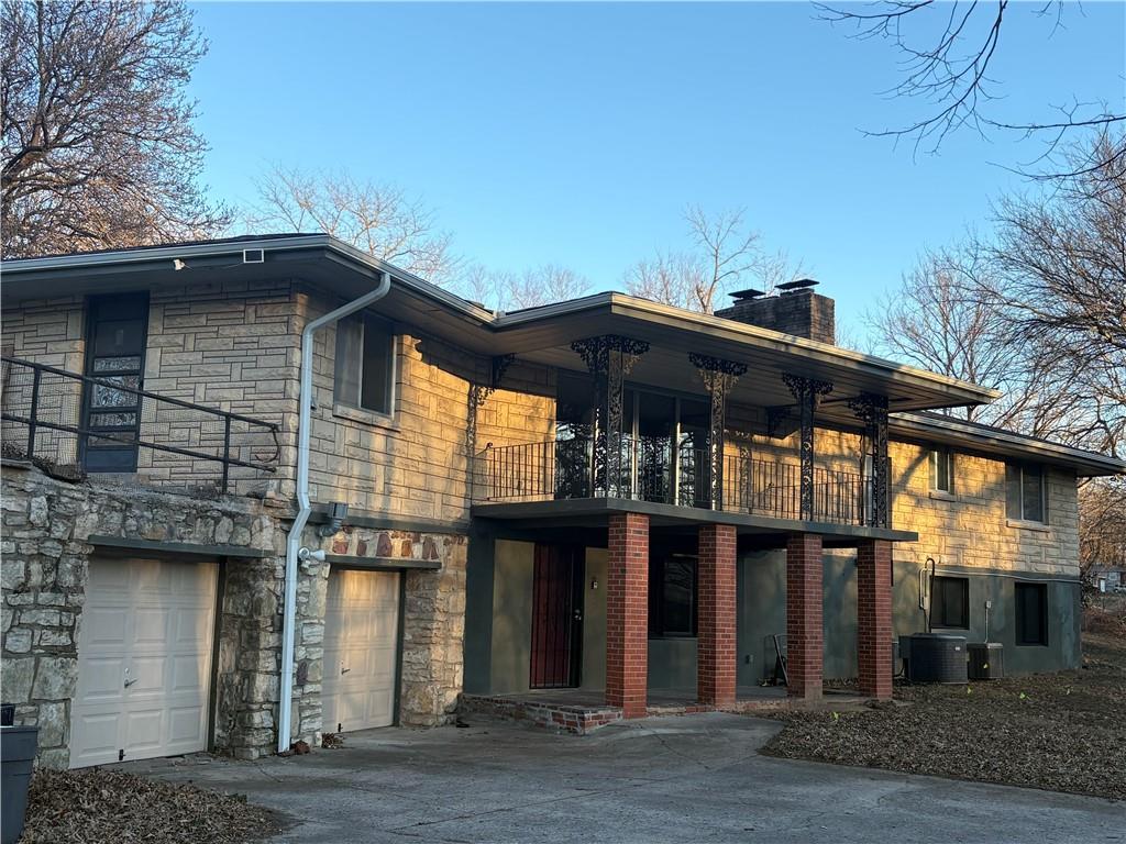 Welcome to this unforgettable mid-century modern ranch on a sprawling ~0.88-acre lot backing to mature trees — rare privacy just minutes from city conveniences! This 4-bed, 2-bath home offers versatile living space with thoughtful updates throughout. The full stone exterior, oversized front porch and private fenced yard invite year-round enjoyment. Inside, the main floor features two generous bedrooms and a full bath, while the lower level includes two additional bedrooms, an updated bath and flexible living areas perfect for second living quarters, kids, hobbies, or working from home. Recent improvements include a new roof in January 2025, refreshed kitchen in 2020, new septic system in 2021, updated gutters, basement Andersen windows with transferable warranty, and a new AC zoned for the lower level in 2022. A private drive leads to the rear-facing 2-car garage and handy storage shed. Don’t miss the blend of classic charm and true modern comforts.