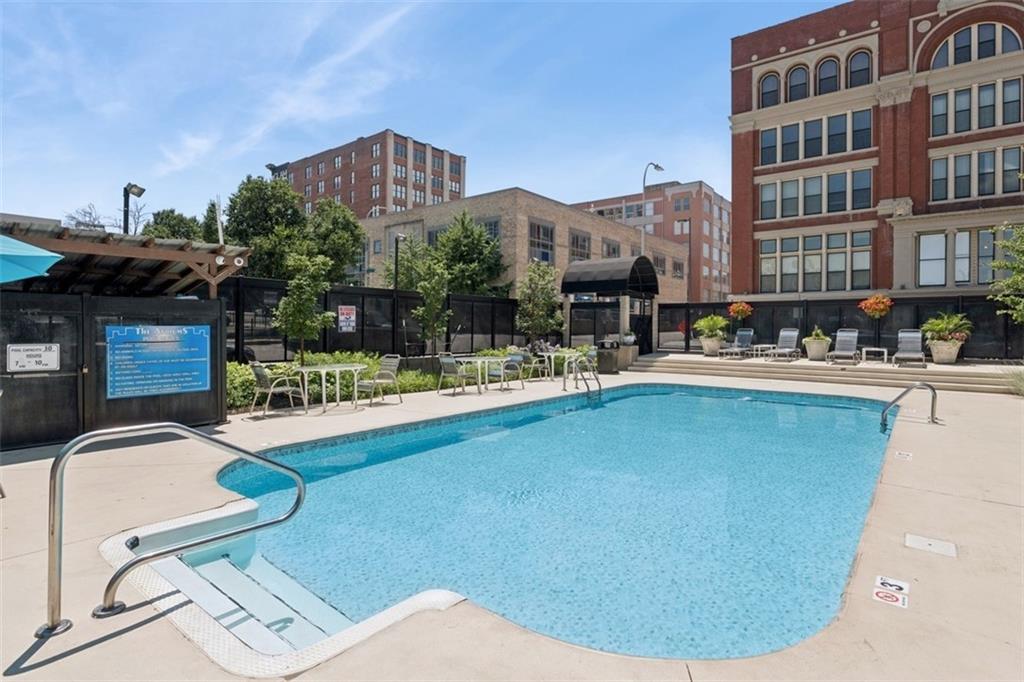 MODERN INDUSTRIAL CONDO IN PRIME DOWNTOWN KANSAS CITY LOCATION! Originally constructed in 1889 as a manufacturing building, Atriums East at Soho West was renovated in 2006 by SWD architects. The two east ground-floor units enjoy a PRIVATE ENTRY off Wyandotte St. From the vestibule, step into an open-layout main level, featuring VAULTED CEILINGS, EXPOSED BRICK, and large picture windows. Updated kitchen is equipped with newer cabinets, stainless steel appliances, built-in microwave, and granite counters. UPDATED FULL BATH WITH WALK-IN SHOWER completes the main floor. Lower level features SPACIOUS BEDROOM and with optional SECOND LIVING SPACE. En suite bathroom and walk-in closet includes a stackable washer and dryer that stay. From the lower level, step out to the building’s amenity hallway that includes a CLUB ROOM & GYM, and access to the secure mailroom and GATED COURTYARD. Courtyard connects to parking garage—ONE COVERED PARKING SPACE INCLUDED for condo occupant(s). Other amenities include beautiful OUTDOOR POOL and access to all amenities in Atriums West (612 Central): Movie theatre, indoor hot tub, and additional gym and club rooms. This remarkable building sits in the heart of downtown KC, just a streetcar ride away from Power & Light, Country Club Plaza, and lots of KC’s best restaurants and nightlife!
