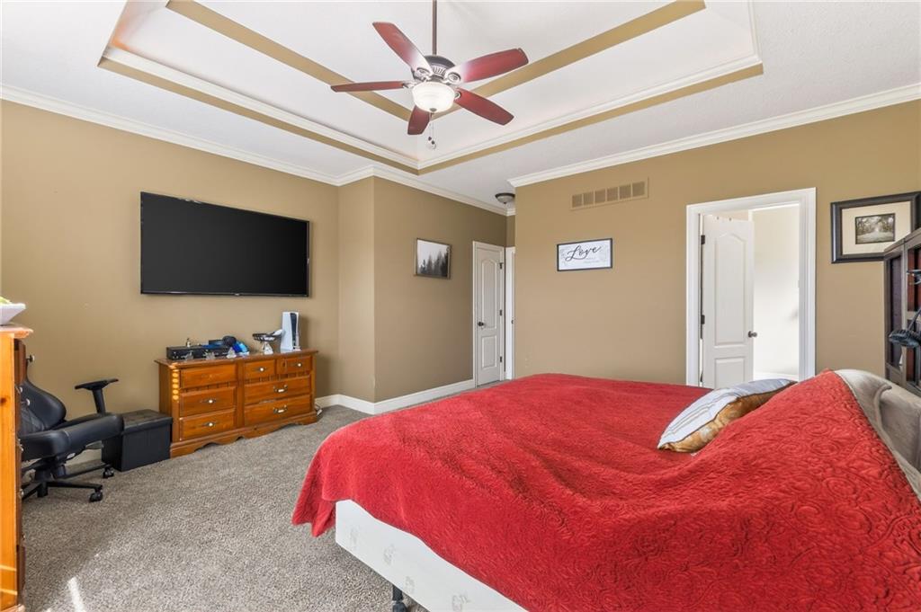 Welcome home to this beautifully maintained reverse ranch in the sought-after community of Kearney, MO, offering space, style, and functionality throughout. This 4-bedroom, 3-bath home features a 3-car attached garage and a spacious open-concept floorplan connecting the kitchen, dining area, and living room-perfect for everyday entertaining. The living room is anchored by a cozy fireplace, while the dining area walks out to a private deck, ideal for morning coffee or evening gatherings. The upstairs primary suite is generously sized with vaulted ceilings and a private bath retreat. The finished lower level expands your living space with a welcoming family room featuring a gorgeous bar, additional bedrooms, and a hidden bonus room perfect for storage, a home gym, or hobby space. The walk-out basement leads to a nicely fenced backyard complete with a paver stone patio and a built-in fire pit, creating an inviting outdoor oasis for all seasons. Located in a highly desirable neighborhood with easy access to schools, shopping, and highways - this home checks all the boxes. Come and take a look! We think you'll love it!