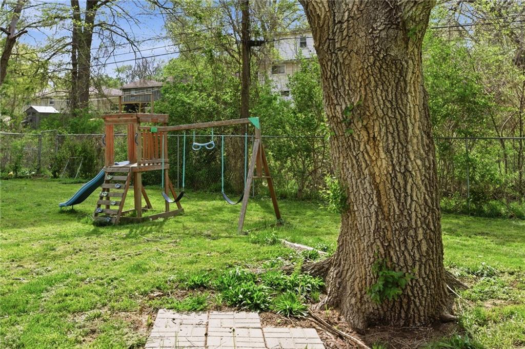 Welcome home to this spacious ranch home located just 10 minutes from the new 2031 season Chiefs stadium! This home combines timeless quality updates with plenty of storage and living space, featuring 3 bedrooms and 1 bath on the upper level and a fourth bedroom, a fifth non-conforming bedroom, and second full bath in the finished walkout basement. The welcoming kitchen features a unique custom epoxy bartop overlooking the dining area. Walk out to the back deck and expansive fenced in backyard, perfect for yard games, firepit cookouts, and all your outdoor activities. You won’t want to miss this gem of a house! Please note that part of the garage has been converted to the dining area living space, so the garage is smaller than the typical garage space. It won't fit most trucks or standard sized SUVs.