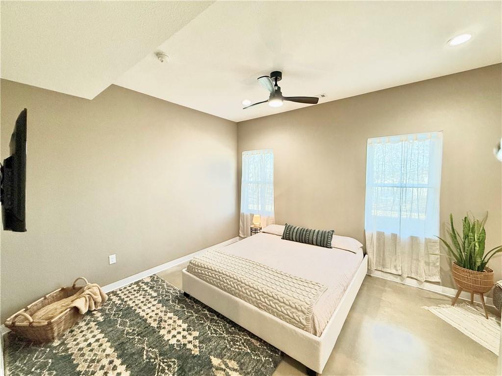 A truly distinguished residence, where refined design meets breathtaking natural beauty. This exceptional custom-built, open-concept 4-bedroom, 3.5-bath home is thoughtfully crafted for elevated living, seamless entertaining, and multi-generational comfort, all framed by sweeping panoramic lake views. At the center of the home, the designer kitchen blends sophistication and function with open shelving, an expansive island with seating, oversized storage drawers, and a stunning 7×7 walk-in pantry ensures a pristine, clutter-free culinary space worthy of the most discerning buyer. Set on two private lots, the property offers rare space and tranquility, allowing you to enjoy golden sunrises, dramatic sunsets, and unobstructed views of Lake Viking’s Fourth of July fireworks from the comfort of home. Every detail has been curated to embrace the lake lifestyle while maintaining privacy and serenity. The finished lower level features soaring 10-foot ceilings and serves as a luxurious guest retreat. Modern design elements include an epoxy floor, a wet bar with a refined speakeasy ambiance, and a climate-controlled garage, creating a perfect blend of comfort and sophistication after a day on the water. Outdoor living is equally impressive, featuring a maintenance-free deck and a covered walkout patio below with a finished ceiling, ceiling fans, and dimmable soffit lighting that enhances evening ambiance while providing added security. Surrounded by mature trees, abundant wildlife, and tranquil lake scenery, this nearly new home is impeccably maintained and truly one of a kind. Additional highlights include a zero-entry design, ample storage throughout, spray foam insulation, a two-car attached garage, manicured landscaping, and a coveted corner-lot setting offering million-dollar views. Conveniently located near a lake entrance, this remarkable home delivers luxury, comfort, and timeless Lake Viking living at its finest.
