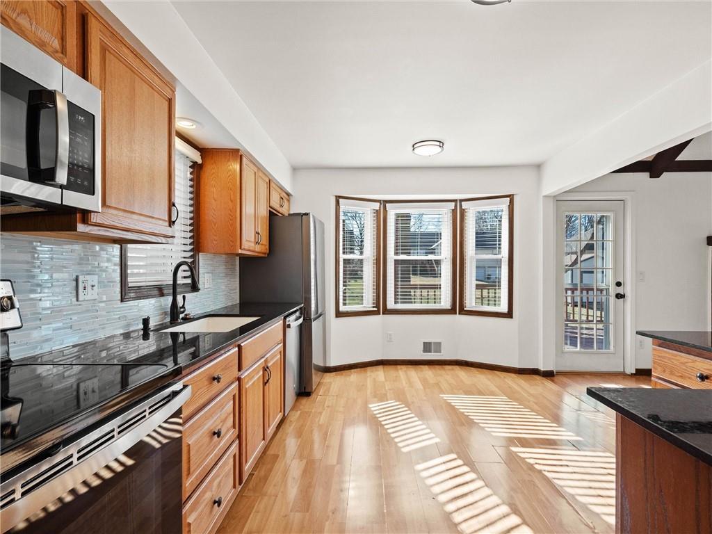 Prepare to fall in love with this meticulously maintained raised ranch that’s been pampered from head to toe. From the moment you pull up, you’ll appreciate the excellent curb appeal, one year old architectural roof, newer garage doors, and crisply poured concrete driveway and extra wide stairs leading up to the front porch. Step inside to find a home that perfectly balances "fancy dinner party" vibes in the formal rooms with "kick back and relax" energy in the family room, where vaulted wood-beamed ceilings and a crackling fireplace steal the show. The kitchen is a total standout with its shimmering glass backsplash, granite counters, and shiny newer appliances that are just waiting for your first home-cooked meal. Retreat to a primary suite—complete with a gorgeously remodeled bathroom featuring a spa-like shower—or head downstairs to discover a basement that’s ready for movie marathons. If you’ve been dreaming of a space for your side hustle, the garage-adjacent hobby room with its own sink is a total game-changer for crafters, stylists, or remote workers. Top it all off with a massive, fenced-in backyard featuring a "party-ready" expanded deck and a sprinkler system to keep your lawn the envy of the block, and you’ve got a home that’s as fun as it is functional! Enjoy peace of mind with the big items taken care of for you including newer windows throughout, freshly scraped ceilings, and one year old roof. Schedule your private showing NOW & see what makes this home truly exceptional!