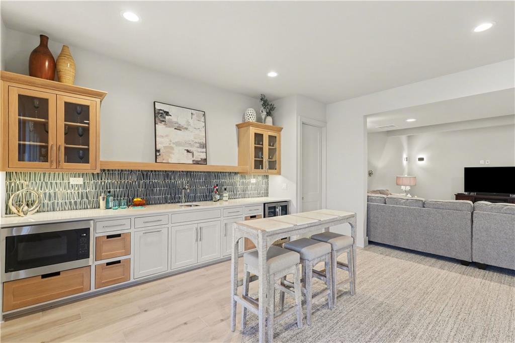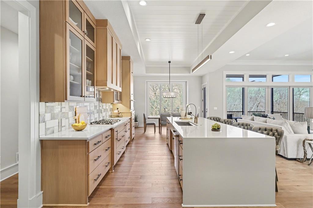 Step into this breathtaking custom-built 1.5 reverse floor plan where style, space, and sophistication come together seamlessly. Just shy of 4,500 square feet, this exceptional home offers 4 bedrooms, 3.2 baths, a 3-car garage, and a coveted walk-out lower level. Stunning curb appeal welcomes you with beautifully manicured landscaping and a charming front porch, while the peaceful backdrop of mature woods and a protected stream creates a private, nature-filled retreat. Inside, an open-concept layout is flooded with natural light and showcases soaring ceilings, gorgeous light hardwood floors, and elegant finishes throughout. The show-stopping kitchen is a dream for entertaining, featuring an oversized island, abundant cabinetry, and a butler’s pantry complete with beverage center and extra prep space. Slide open the glass doors and step onto the fully screened-in porch, the perfect spot to unwind while overlooking the serene, tree-lined setting. The main-floor primary suite is a true sanctuary, highlighted by a stunning statement wall and a spa-inspired bath with backlit mirrors, a luxurious soaking tub, and a jaw-dropping walk-in closet featuring custom built-ins, a center island, and a dedicated makeup vanity. A second main-level bedroom and full bath add flexibility and convenience. Downstairs, the finished walk-out lower level expands your living and entertaining space with two additional bedrooms, a spacious family room with a full wet bar, and an impressive workshop with sealed floors, motion-sensor lighting, and direct access to the backyard and a second covered screened porch. No detail was overlooked — from the epoxy-coated garage floor and upgraded interior lighting to enhanced landscaping and countless thoughtful touches. With approximately $83,000 in upgrades, this home shows like new, has been lightly lived in, and meticulously maintained. Why wait to build when you can have luxury, upgrades, and perfection ready now!