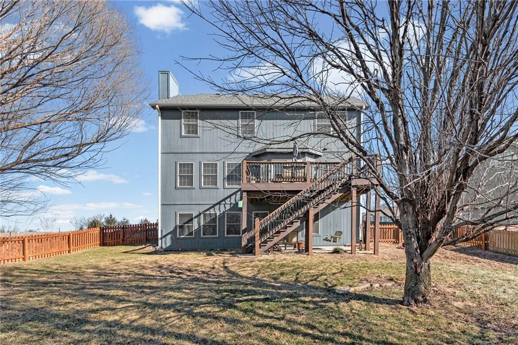 Welcome home to 1301 NE 196th Street in Smithville, where space, comfort, and location come together effortlessly. A covered front porch sets a welcoming tone before you step inside to an open floor plan that seamlessly connects the kitchen, dining area, and living room—ideal for both everyday living and entertaining. A half bath on the main level adds everyday convenience. Upstairs, the spacious primary suite offers a true retreat with two walk-in closets and a jetted tub, while three additional bedrooms and a full hall bath provide plenty of room for everyone to unwind. The finished lower level adds even more flexibility with a generous rec room, complete with a wet bar and a convenient half bath—perfect for hosting, hobbies, or movie nights. Step outside to an expansive fenced backyard, accessible from both the main level and basement, with no homes directly behind you for added privacy. Located directly across the street from the neighborhood pool and close to community trails and a pond, this home is also just minutes from Smithville Lake and nearby boat docks. With four bedrooms, two full bathrooms, and two half baths, plus a layout designed for real living, this home makes it easy to imagine yourself settling in and staying awhile.