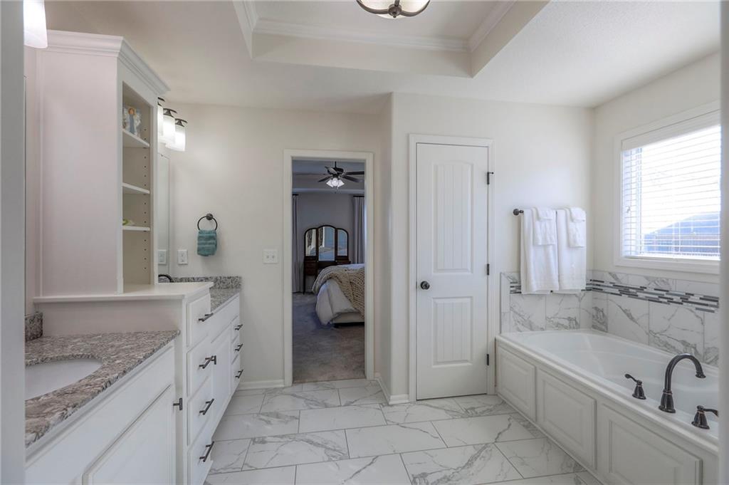 From the moment you arrive, you’ll know you’ve found THE ONE. This pristine, move-in-ready home features an open main level with a spacious living area and a versatile bonus room ideal for an office or formal dining. The main level showcases is the kitchen with custom cabinetry, granite countertops, and hardwood floors (excluding office/dining). The dream kitchen includes a walk-in pantry with extra shelving and grocery door, LED lighting, and easy access to the mudroom and half bath off the deep 3-car garage. Enjoy elevated lake and nature trail views from the deck, patio, and abundant windows throughout. Upstairs the Primary Suite offers a cathedral ceiling, spa-like bath with double vanities, whirlpool tub, tiled shower with dual shower heads and bench, walk-in closet, and double linen closets. The three other spacious bedrooms feature oversized closets, Jack & Jill baths with double vanities, ensuite baths, and a bedroom-level laundry room. Lower level has tons of potential with the opportunity to add a 5th bedroom, full bath, and additional living space in the 1,000+ sq ft walk-out basement, there’s room to grow. High-efficiency HVAC, storm shelter, sprinkler system, underground buried downspouts. Located in Whispering Hills Estates, surrounded by woods and nature, yet conveniently close to Lee’s Summit, highways, schools, dining, and shopping.