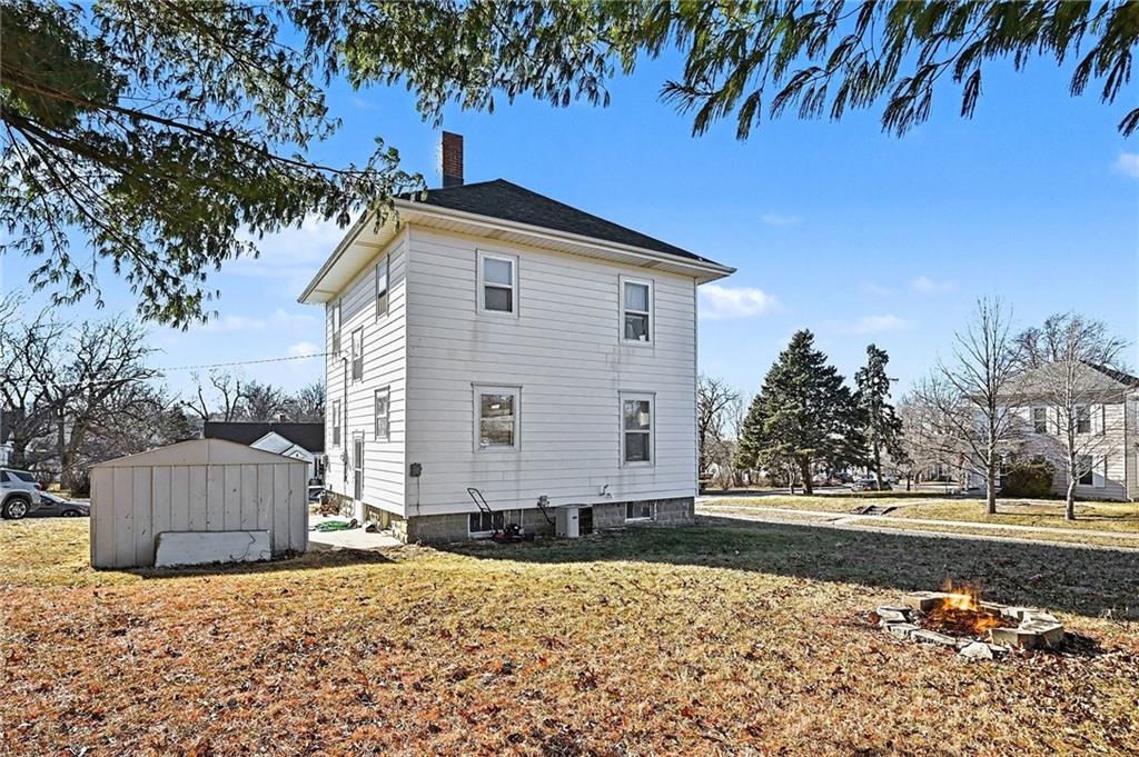 Investment opportunity! This 4 bedroom, 1 bath home would make the perfect rental, flip or first home! Loads of potential with the original hardwood floors, craftsman style trim, beautifully detailed baluster and lovely French doors still intact! Several big ticket updates have already been completed including a new roof, newer furnace and updated bathroom. Full basement offers ample storage space and laundry hook ups. Located on a large corner lot adjacent to Judah Park and just minutes from Northwest Missouri State University! 10x10 storage shed stays with property.