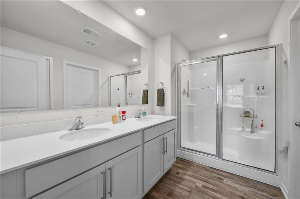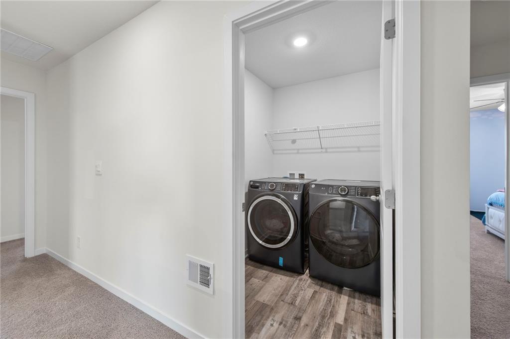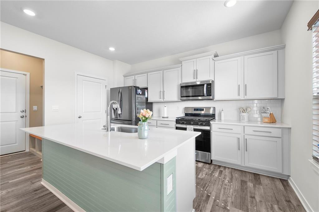 Welcome to this better-than-new two-story home crafted by D.R. Horton. This 4-bedroom, 3-bath residence features 9-foot ceilings and an open, spacious layout designed for modern living. The large gourmet kitchen is a standout, offering quartz countertops, painted maple cabinetry, and premium Whirlpool appliances, making it ideal for both everyday living and entertaining. The home continues to impress with luxurious bathrooms, complete with quartz-topped vanities and Moen faucets. The primary suite delivers a spa-like experience with a five-foot shower and framed glass enclosure. Enjoy elevated comfort and convenience with climate and security control via a Honeywell Pro-Z Wave thermostat. The finished basement adds a wonderful extension of the home, creating a cozy and versatile space ideal for family movie nights, game days, or hosting friends. Whether you’re looking for a comfortable retreat to unwind or an inviting area to entertain, this thoughtfully finished space offers endless possibilities for making memories together. Blending luxury with functionality, this home showcases thoughtful design upgrades throughout. Paired with its unbeatable location, this exceptional property truly has it all.