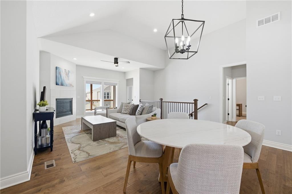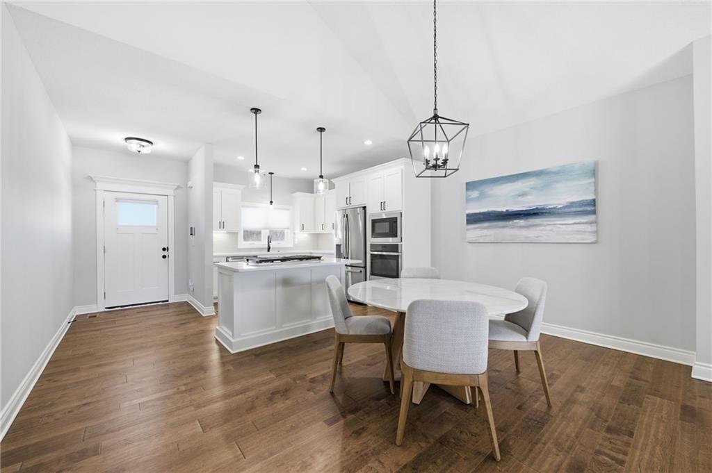 Maintenance provided living at it's BEST! 2 Years young! Inviting, covered front porch. Happy and bright interior! Wide plank, honey-toned, textured Hardwood Floors caress the main floor. Open kitchen featuring Arctic White Quartz counters and island with 5-burner gas range, downdraft hookup ready if desired,soft-close cabinets and drawers, SS appliances, open to dining and great room w/ gas fireplace, Covered Deck, and steps to the yard! Underground fence installed for your sweet pups, or install a fence! Rare options for maintenance provided properties! HUGE Primary Suite with Double Vanity, Ceramic tile shower, potty closet, large walk-in closet conveniently connected to the Laundry Room. 2nd Main Floor Bedroom and full bath! Lower level has media room/rec room and 3rd bedroom & Bath. Two storage largestorage rooms! ALL Stainless Steel Appliances stay and Washer/Dryer! Furniture negotiable! New hot water heater 2025! Vivint security system ready! STUNNING professional landscaping with River Rock beds Lawn care & snow removal included in low monthly HOA Fees of $150! Close proximity to shopping, restaurants, parks & recreation, and Smithville Lake! Great access to Hwy 169, 152, and 435! Get to the airport in less than 15 minutes!