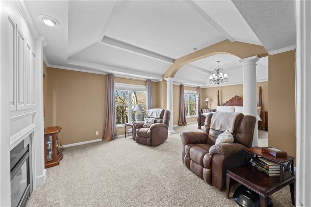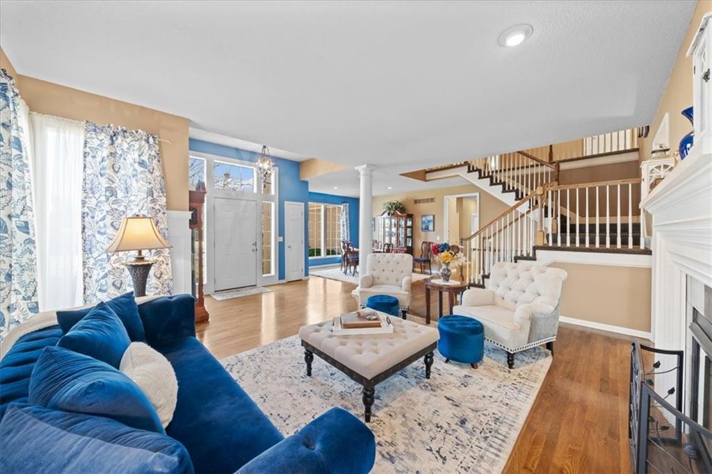 Welcome to Linden! This Dan Smith Spring Tour award–winning home is priced to move and perfectly located in the sought-after Hampton Place neighborhood. Just around the corner from Sunrise Point Elementary, you’ll enjoy easy access to a playground with soccer and baseball fields, a basketball court, and walking trails. Ironhorse Golf Course is less than five minutes away, and the new shops and dining at Bluhawk make this an ideal location. Hampton Place residents also enjoy a large neighborhood pool with lifeguards during the summer months. Inside, the expansive living space seems endless, featuring a formal living room, dining room, family room, walk-in pantry, and an eat-in kitchen. Step outside to the 20x20 patio with pergola—perfect for entertaining or relaxing evenings outdoors. This home offers 4 bedrooms and 4.5 bathrooms, along with recently updated HVAC including an energy-efficient furnace and AC. Three gas fireplaces add warmth and charm throughout. A dedicated office with pocket French doors, built-in bookshelves, and its own fireplace creates the perfect work-from-home retreat. The chef’s kitchen impresses with a 5x6 granite center island, double ovens, and a warming drawer. The primary suite is a true retreat, complete with a fireplace, built-in TV nooks, sitting area, spa tub, double vanities, and a spacious walk-in closet. Bedroom two includes a private ensuite, while bedrooms three and four share a Jack-and-Jill bath with a shower/tub combination. The finished walk-up basement is filled with natural light and offers a full bath, workout room, family room, bar, and gaming area—plus ample storage space. Don’t miss this incredible opportunity to own a stunning home in an unbeatable location!