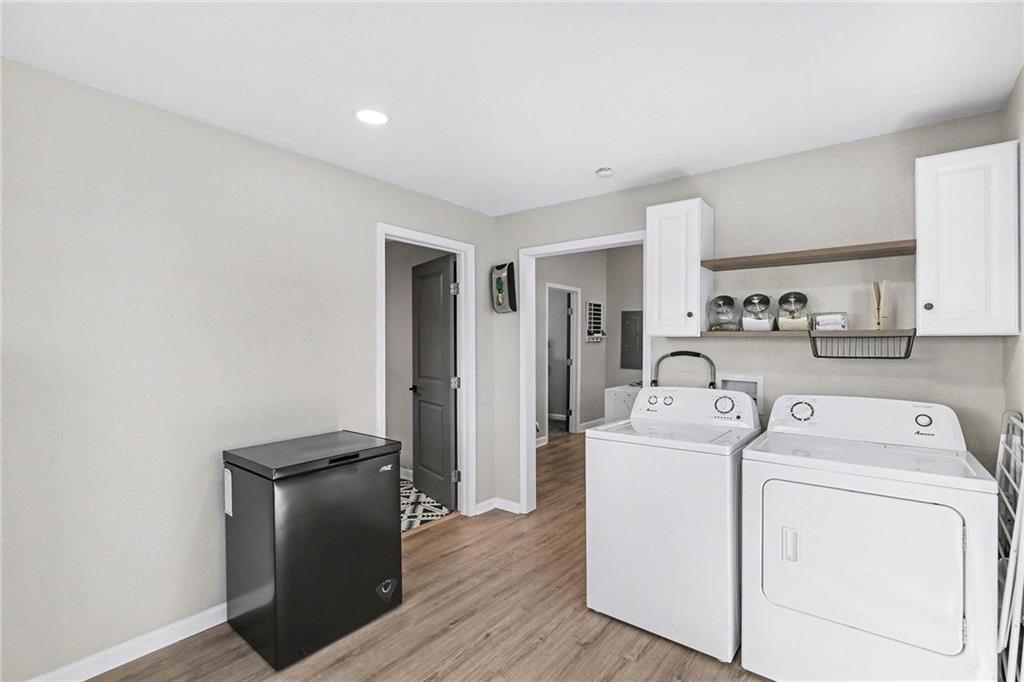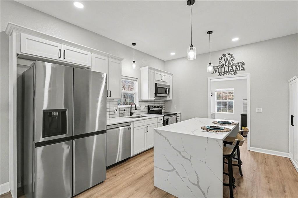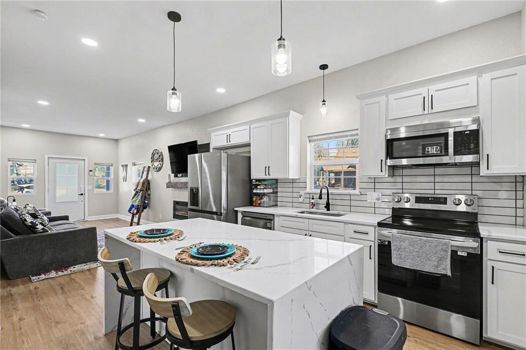 Get ready to say WOW to this wonderfully updated bungalow! Walk inside to an open and airy living area featuring tall ceilings, electric fireplace that produces heat, and high end laminate flooring in a warm wood shade. The three year old kitchen is the perfect place to cook on the stainless stovetop and gather friends around the large island, or take everyone out to the private, fenced yard to roast smores around a fire! A mudroom off the back door is ready for you to throw coats and shoes and there is plenty of additional room to add the storage you require. The primary bedroom features a large walk-in closet with a closet system to maximize space. Even the full bathroom hits all of its marks with a tub and overhead shower, new vanity and fixtures, and classy white subway tile to tie it all together. Osawatomie is a community built on history and nature with many historic landmarks, museums, parks, and trails nearby. You will not regret checking out this lovely home in a classic Kansas town!