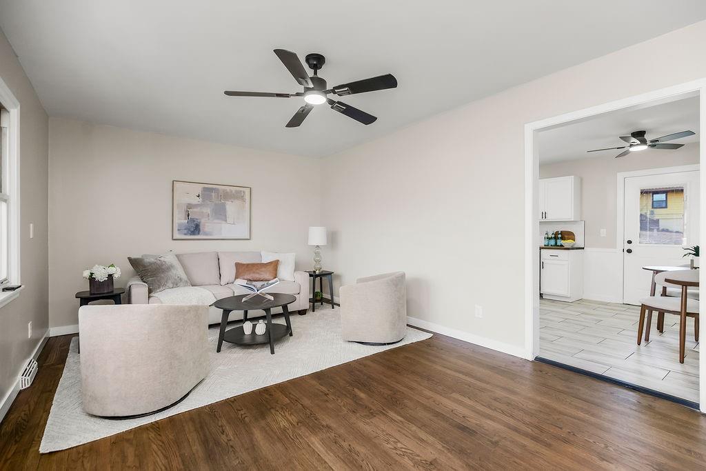 This completely remodeled 3-bedroom, 2-bathroom home offers almost 2,000 square feet of beautifully updated living space. Refinished hardwood floors run throughout the main level, complemented by all-new interior paint, lighting, outlets, and a fully updated electrical system. The kitchen features all-new cabinetry, butcher block countertops, and a newly added door leading to the backyard, creating great flow for everyday living and entertaining. The main bath has been completely gutted and remodeled. The newly finished lower level includes a non-conforming fourth bedroom, offering flexible space for a guest room, office, or workout area, and a newly added full bathroom. The 1-car garage features a new door and opener. This home is nearby schools, golf clubs, and has easy high access.
