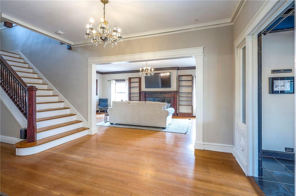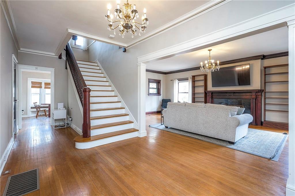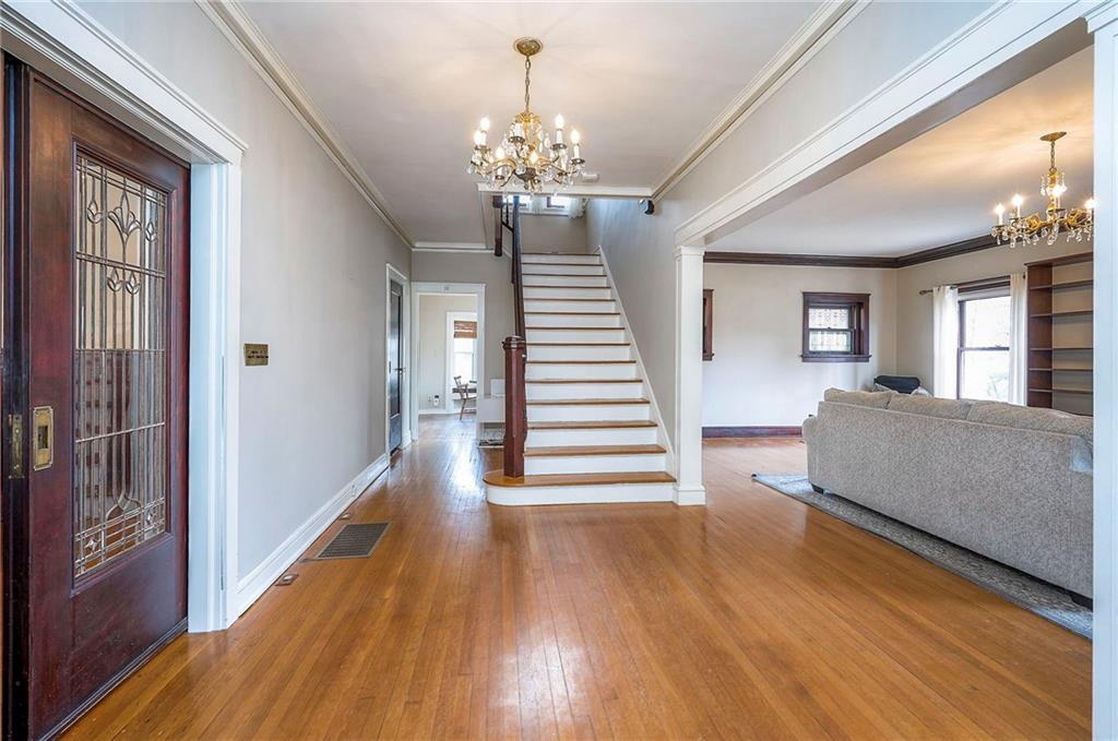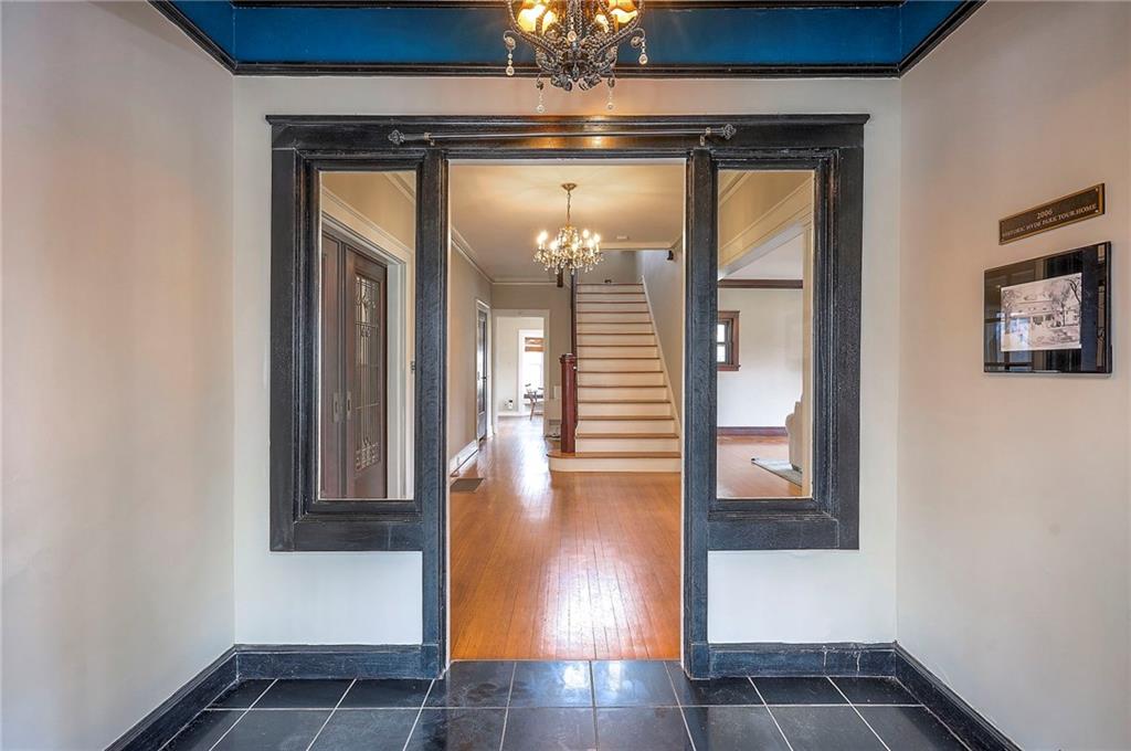 Step into a true piece of Kansas City history. The Levi McIntire House, built in 1911 by the renowned architectural firm Keene & Simpson, is recognized for its architectural significance and is listed on the National Register of Historic Places. It is also a contributing property within the Hyde Park Historic District, highlighting its importance in Kansas City’s rich historical fabric. Levi McIntire, one of Kansas City’s early real estate professionals, built this remarkable residence as a reflection of both his personal success and the city’s rapid expansion in the early 1900s. This historic home near Hyde Park showcases timeless craftsmanship with intricate woodwork, leaded pocket doors, and gorgeous original hardwood floors throughout. Modern updates include heated flooring in 2 bathrooms, granite countertops, new gas lines, and updated electrical. Sewer line was fully inspected in 2025 w/ no issues. The home offers 4 bedrooms, including a private 3-floor suite, an enclosed front porch, a gated private driveway, and a carriage house with the potential to finish. Enjoy peace of mind with a NEW tile roof that is warranted. Own a stunning architectural treasure — a true piece of Kansas City history.