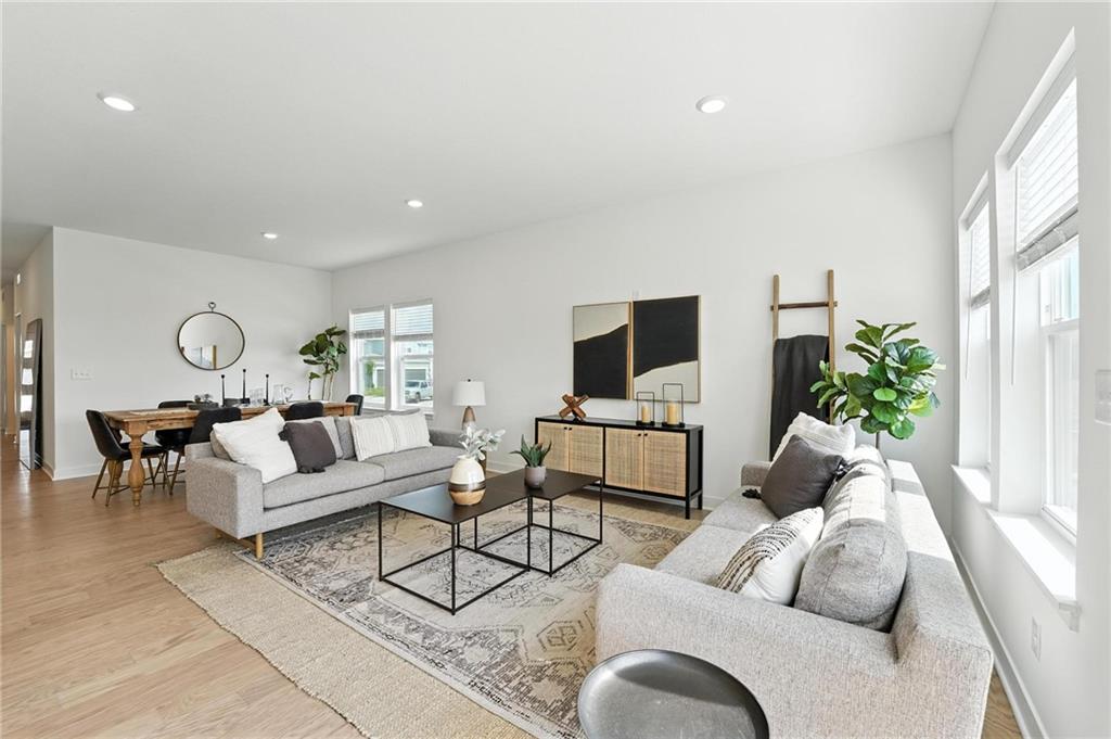 Our Wildflower home plan embodies the ideal ranch layout, offering both style and functionality. As you enter through the front door, you’re welcomed by a spacious entryway that leads into a bright, open-concept kitchen, dining, and living area—perfect for both relaxation and entertainment. The main floor features three well-appointed bedrooms, including the primary suite, which boasts a beautiful shower and a generous walk-in closet. The second and third bedrooms are versatile, easily accommodating guests or serving as a home office, with a full bath conveniently located between them. Photos from a previous model.
