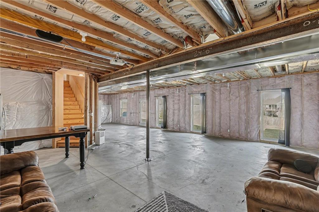 4 bedroom, 2.5 bath Logan Plan by Hoffman Custom Homes in the highly desired Waterford Subdivision within the Staley High School District! This wide-open two-story backs to green space and is filled with natural light. The main level features a spacious kitchen with a large island, granite countertops, walk-in pantry, wide-planked wood floors, and a bright, separate office. Upstairs offers bedroom-level laundry and 4 spacious bedrooms, two with large walk-in closets. The basement is prepped for finishing with electrical completed, insulation installed, abundant windows, and a walk-out to the flat backyard that opens directly to green space. Exterior features include a covered deck, lower patio, level yard, and a large 3-lane driveway with an installed basketball hoop. The neighborhood also offers a community pool for added recreation. A fantastic opportunity to own a better than new Logan plan with high energy package with 95% high efficiency HVAC, Gerken thermopane windows and R-49 insulation in the attic!