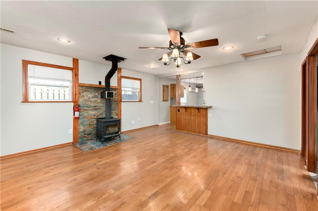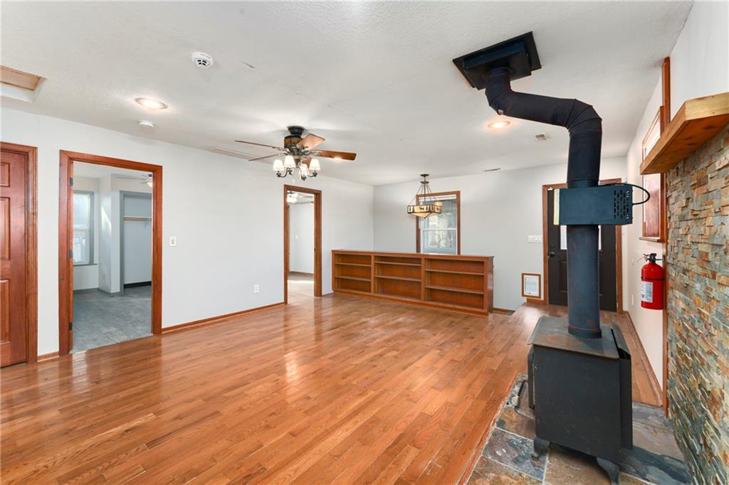 A rare rustic retreat tucked within the city limits of Independence. This distinctive cabin-style home offers the warmth and character of country living with the convenience of an in-town location. Surrounded by a wooded backdrop, the backyard provides a peaceful, private setting ideal for relaxing or entertaining. Start your mornings with coffee on the front porch or in the spacious sunroom. The expansive backyard features a charming red barn wired with electricity, offering excellent potential for a workshop, studio, or additional storage space. Inside, the home offers 4 bedrooms and 2 full bathrooms, accented by rustic wood finishes throughout. The primary bedroom includes its own private bath and his-and-hers closets. The country-style kitchen comes fully equipped with all appliances included. A large family room provides an inviting space for gatherings and features a beautiful wood-burning stove as a focal point. The unfinished partial basement offers room for storage or future expansion. With an existing egress window, the space provides the potential to add a conforming fifth bedroom or additional living area. A one-of-a-kind property offering charm, space, and versatility. This home truly feels like a private retreat while remaining close to everything Independence has to offer. Schedule your showing today!