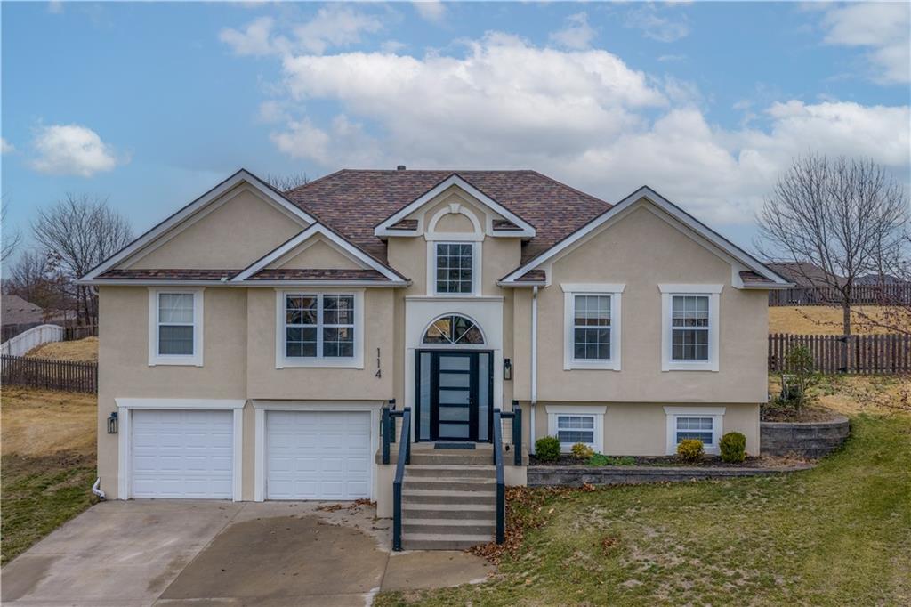 Your new home for the New Year! This exquisite home was extensively remodeled just a couple of years ago. Nestled in a cul-de-sac in the desirable Deerfield subdivision, just a short distance to shopping and restaurants downtown and a 15-minute commute to Whiteman AFB. Coming up the extra wide entry staircase leads to soaring ceilings in the spacious Living Room with a cozy gas fireplace for the chilly days. The breakfast area connects to the stunning Kitchen with gorgeous stone countertops, tile backsplash, stainless steel appliances and a pantry. The dedicated Dining Room is directly nearby. The Primary Bedroom Suite is on one side of the home with direct access out to the back yard patio and a large on-suite Bathroom with vaulted ceilings, double sink vanity, jetted tub, separate tiled shower, and generous walk-in closet. The secondary Bedrooms and Bathroom are on the opposite side of the home. Head to the lower level to the Family Room/flex space with another full Bathroom. The fenced back yard is quite wide with a landscaped patio, fire pit and grill station for relaxation, hosting, and kids/pets to play safely. This is also within walking distance to the Hidden Pines Country Club; join as a member for all access to the golf course and pool! The neighborhood HOA frequently hosts community events, food trucks, and socials. Home is where memories are made...start making new ones in your beautiful home and neighborhood!