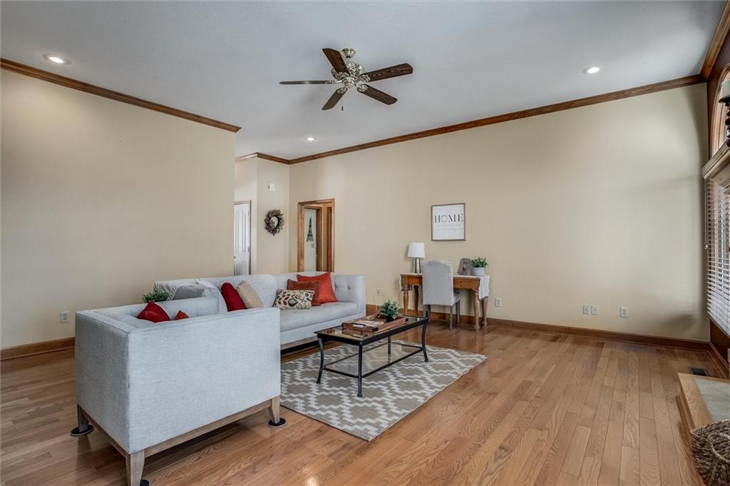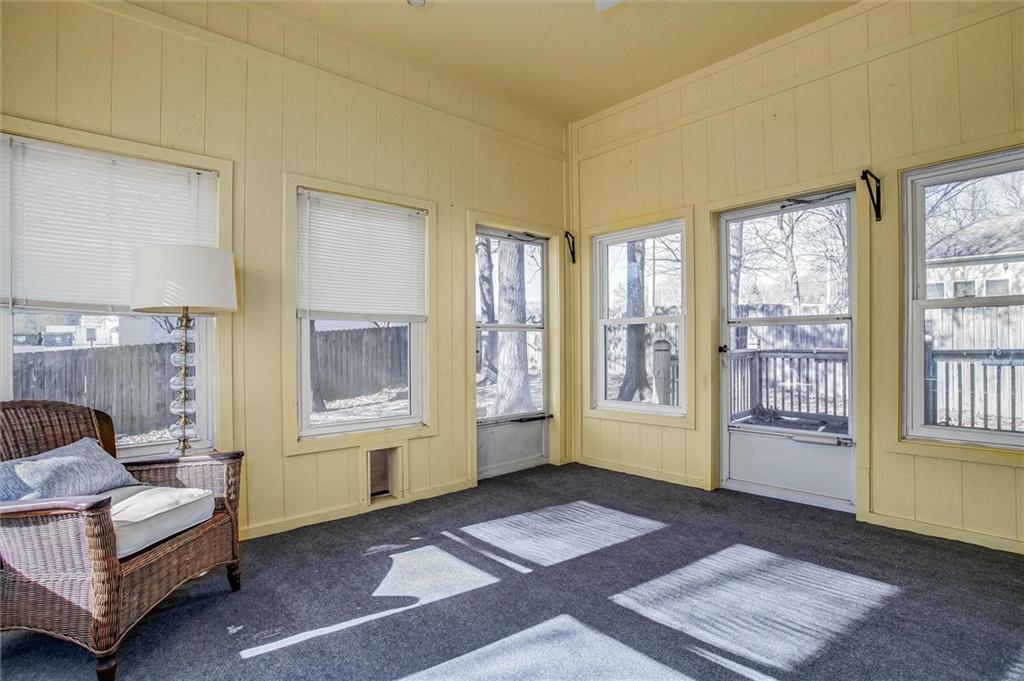 This charming brick front ranch welcomes you with timeless curb appeal, a covered front porch, and a gently elevated lot with a retaining wall that adds character and presence. Inside, the home opens to a spacious living room highlighted by hardwood floors, crown molding, arched windows, and a cozy fireplace that anchors the space beautifully. Natural light pours in throughout, creating a bright and comfortable feel. The layout offers easy main-level living with well-sized bedrooms, neutral finishes, and thoughtful details throughout. A sun-filled porch provides the perfect bonus space for relaxing, reading, or enjoying views of the backyard year-round. The laundry room is conveniently located and features ample cabinetry and workspace. Out back, enjoy a fenced yard with mature trees and a deck ideal for entertaining or quiet evenings outdoors. The oversized two-car garage offers generous storage and functionality. Well maintained and move-in ready, this home blends classic style with everyday comfort in a setting you’ll love coming home to.