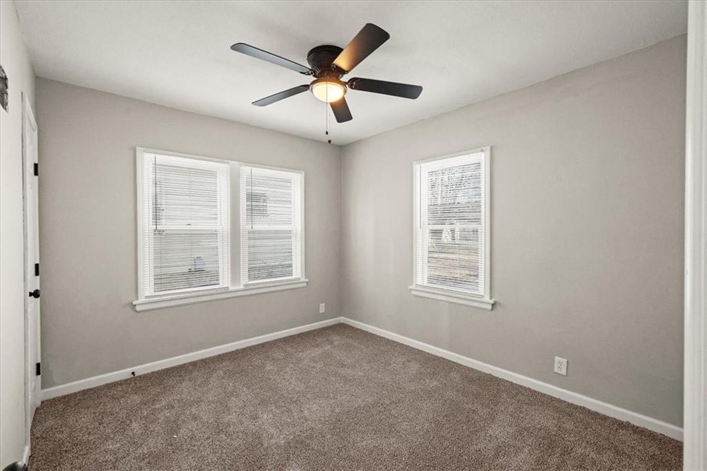 Well-improved 1.5-story home offering 4 bedrooms with all-new carpet and modern ceiling fans throughout. The kitchen features brand-new cabinetry, with a stove, dishwasher, and microwave to be installed prior to closing. The main level includes convenient laundry and a half bath, while bathrooms showcase custom tile work and new vanities. The basement offers partially finished ceilings, providing flexible space for storage, recreation, or future finishing. Significant exterior improvements include vinyl siding, new vinyl windows, and a new roof and gutters. A detached two-car garage and ample parking complete this move-in-ready home.