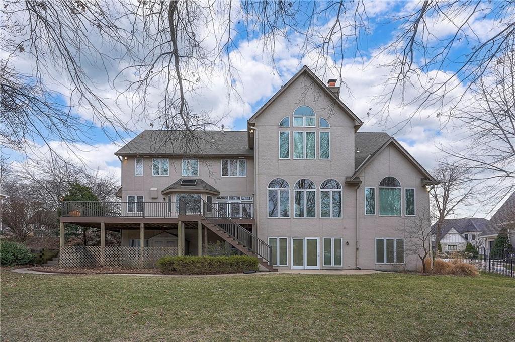 Welcome to this expansive and well-built 1.5-story home offering 4,224 square feet on the main & second floors, plus a large finished walkout basement with 1,500 finished square feet. The home sits on a beautifully landscaped lot in a prime Overland Park location. You’re greeted through a leaded glass front door from a charming courtyard into an impressive two-story entry, where a nearby three-story fireplace anchors the home & immediately showcases its grand scale. The main level features a spacious living room with wood beams, a fireplace & abundant natural light. A large formal dining room easily accommodates entertaining on a grand scale. The kitchen boasts several high-end Wolf appliances & a four-burner gas stove with a griddle. Just off the kitchen is an exceptionally large laundry room. The main-floor primary suite features a vaulted ceiling, generous closet space, and an en-suite bath with separate tub and shower and extensive storage. The second floor offers three very large bedrooms, excellent closets, and two and one-half bathrooms. The half bathroom could potentially become a second laundry room. There is also a bonus room featuring a wet bar, a fireplace and a large vaulted ceiling. It has the potential to serve as a second primary suite. The finished walkout basement is designed for entertaining, with a large bar, multiple gathering areas, wine storage, an additional bedroom and full bath, and access to a spacious patio. There is also significant unfinished space. Additional highlights include a huge deck overlooking the private lot, mature landscaping, a deep side-entry garage well-suited for large SUVs, trucks, and storage, zoned HVAC, partial HVAC replacement, and a major investment in several newer windows. This home offers a rare opportunity—exceptional bones, generous proportions, and a premier location with excellent schools, quick highway access, and nearby shopping and dining—ready for the next owner to bring their design vision to life.