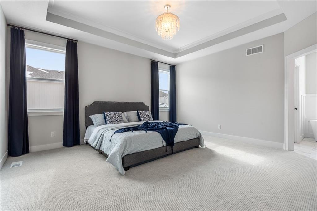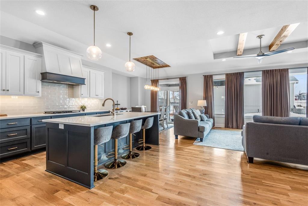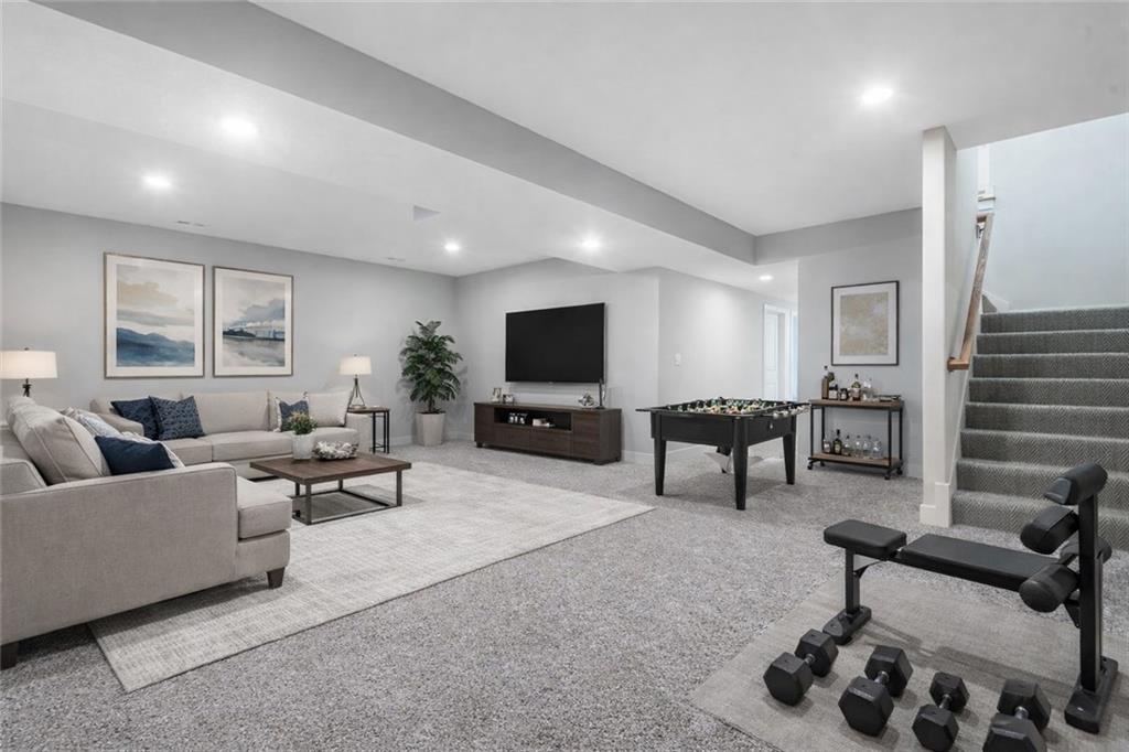 Beautiful, large bedrooms 4 + 1 (non-conforming) = 5 possible bedrooms, 3 bathrooms, Reverse 1.5-story home with 2 walk-in closets in Primary Bedroom! The open main level seamlessly connects the kitchen, dining, and living areas, showcasing hardwood floors, vaulted ceilings, updated trim, and abundant natural light. The gourmet kitchen is a chef’s dream, featuring quartz countertops, tile backsplash, gas cooktop, large walk-in pantry, and generous workspace—perfect for entertaining. Family Room stuns with a floor-to-ceiling fireplace, vaulted ceilings accented by wood box beams, designer ceiling fan, and custom window coverings. An office tucked to the side offers the perfect private workspace. The Primary Suite is a true retreat with vaulted ceilings, a luxurious stand-alone soaker tub, separate tiled shower with dual shower heads, two vanities, and again TWO walk-in closets. The main-floor laundry offers convenient direct access from the primary closet. The finished lower level provides a spacious rec room, already stubbed for a future bar, along with three additional bedrooms (one non-conforming), a full bath, and plenty of storage space. Relax and enjoy your morning coffee on the screened-in covered deck. Brookwood Farms is an active, social community offering amenities for all ages, including a community pool and cabana, playground, fishing pond, and walking trails. Come see everything this beautiful home—and Brookwood Farms—has to offer!