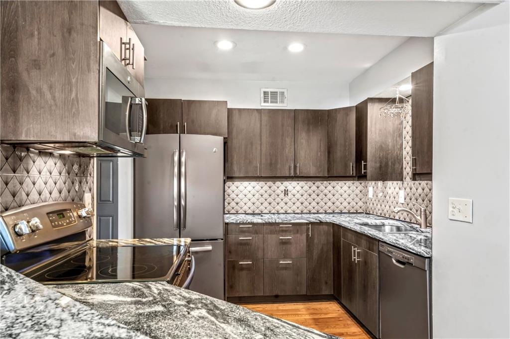 Clean and move in ready!! From the moment you step inside 6518 Charles St you realize this is HOME!! Feels good and looks awesome. Lots of features for the money: hardwood floors, fireplace with gas start, granite counters, GE slate appliances, luxury vinyl plank flooring in the full bathrooms (2 full & 2 half), newer carpet, catio, end unit townhome, new windows, attic fan, double vanity in primary bath, huge tile shower in primary bath, kitchen cabinets/drawers are soft close, artificial turf in the yard with a privacy fence, wrought iron spindles with wood stairs going to the bedroom level. Washer and dryer stay in the basement. Single car garage. Did I miss anything on your list?