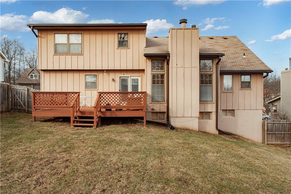 Motivated Seller! Welcome to this beautifully maintained one-owner 1.5-story home in the desirable Seven Hills subdivision of Platte County. Offering 4 bedrooms and 4 bathrooms, this spacious property combines comfort, functionality, and an exceptional layout. A charming front porch welcomes you inside. A formal dining room sits just off the entryway, leading into the inviting living space and adjoining eat-in kitchen. The main-level primary suite features a full bathroom and walk-in closet, providing convenience and privacy. Enjoy easy indoor/outdoor living with a deck right off the kitchen, perfect for morning coffee or evening gatherings. A main-level laundry area with washer and dryer, plus a conveniently located half bath, complete the first floor. Upstairs, you’ll find three generously sized bedrooms, a full bathroom, and a charming loft area, ideal for a reading nook or study space. The finished walkout basement is an entertainer’s dream, offering a large open area, built-in bar, bathroom access, and plenty of storage. Step outside to the expansive backyard, complete with a privacy fence, perfect for pets, play, or outdoor entertaining. This lovingly cared-for home is ready for its next chapter, come see everything it has to offer!