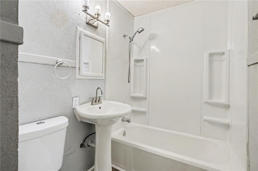 Updated home with a bright living room and arched opening to the dining area, plus neutral interior paint and white trim. The kitchen features granite-look countertops, subway-tile backsplash, double-bowl sink with gooseneck faucet, stainless electric range, and LVP-style flooring, plus a rear door to the yard. Hardwood flooring runs through the main living areas. The refreshed bath offers a tub/shower surround, pedestal sink, and updated lighting. The unfinished basement with painted stone foundation provides a large open area for storage and hobby space with easy access to mechanicals/utilities. Spacious front yard with mature shade trees. Buyer to verify all info and measurements.