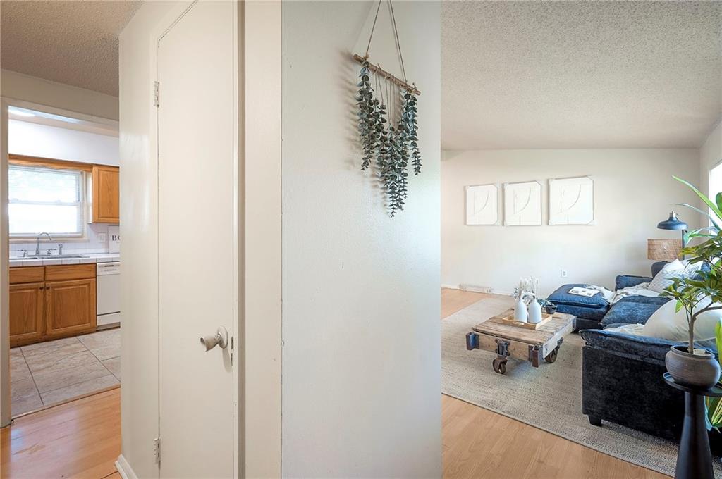 Honey, stop the car! This fantastic 4-bedroom, 2-bath half-duplex in Belton is the move-in ready home you've been searching for, complete with fresh paint inside and out. Step inside to an open and bright living room, filled with natural light from newer windows and showcasing gleaming hardwood floors that extend throughout the home. The kitchen is equipped with durable ceramic tile floors, matching ceramic countertops, a stylish backsplash, and offers a pleasant view of the backyard. From the dining area, elegant French doors lead out to a spacious deck—perfect for unwinding or hosting guests—which overlooks the private, fenced-in yard. All four spacious bedrooms feature beautiful hardwood floors and ceiling fans. The home includes two full bathrooms for your convenience: the hall bath offers a classic shower-over-tub combination with full ceramic tile, while the second bathroom features a modern walk-in shower. Unlock incredible potential in the full unfinished basement! Featuring an egress window, easy plumbing access for an additional bathroom, and a sump pump, this space offers the opportunity to add nearly 600 square feet of living area and build instant equity. Don't miss this fantastic opportunity