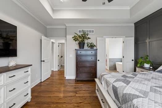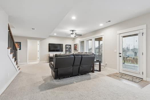 LIKE NEW!!!!! This 3.5 year old beauty in the coveted Tom French new homes community of Covington Creek, is IMMACULATE. A perfect blend of style and functionality from the moment you step in you will appreciate the light filled open concept flow and thoughtful upgrades throughout. The spacious living area seamlessly connects to a well appointed kitchen featuring ample custom cabinetry, double ovens, a huge walk in pantry and a layout ideal for everyday living and entertaining. Within walking distance of the Community pool and playground. BONUS ROOM- a full, state of the art home theater with six oversized power-reclining loungers in tiered seating- perfect for movies, streaming, and gaming!!! Grade and middle schools within walking distance and several pre-school and daycare options near the Community. Yard is fully fenced and the home sports a full, outdoor upper deck accessible from the kitchen/dining area, and a large poured patio off the lower level walk out family room. This extremely lovingly cared for home delivers the ideal combination of location, layout and livability.... Welcome Home!