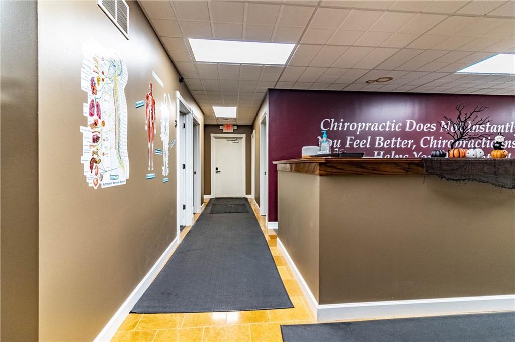 Excellent Opportunity to own a spacious, 3600 sq ft, well maintained, commercial building located in a high traffic area. This property is currently being used as a successful, thriving, chiropractic clinic and there is the option to purchase the business and assets in addition to the building. Clinic offers 7 treatment rooms, 2 offices, 3 restrooms, kitchen, laundry, conference room, 2 storage rooms, 2 reception areas and a waiting room. One of the bathrooms includes a shower and is a private bathroom located off an office. This property is zoned general business so its suitable for office space, restaurant, retail, or other service-based business... options are endless. Features ample parking/detached 1 car garage could be used for additional storage/3 HVAC units/High-end siding/Beautiful Signage/ This building is set up in a way that the back portion could be rented out for additional income or expand the existing practice.