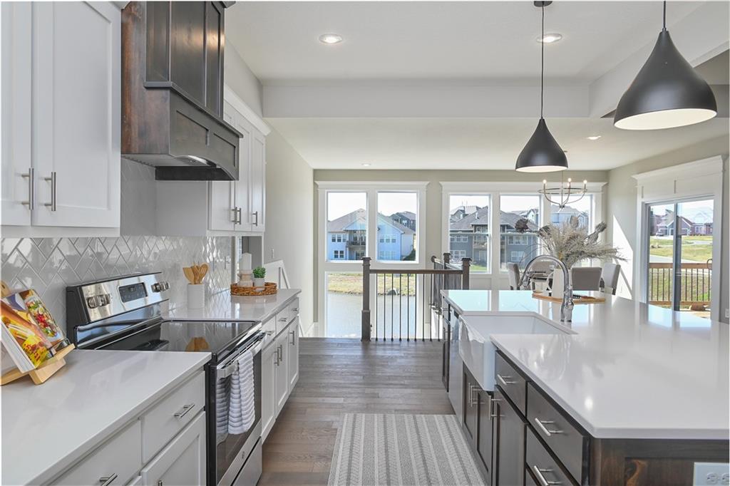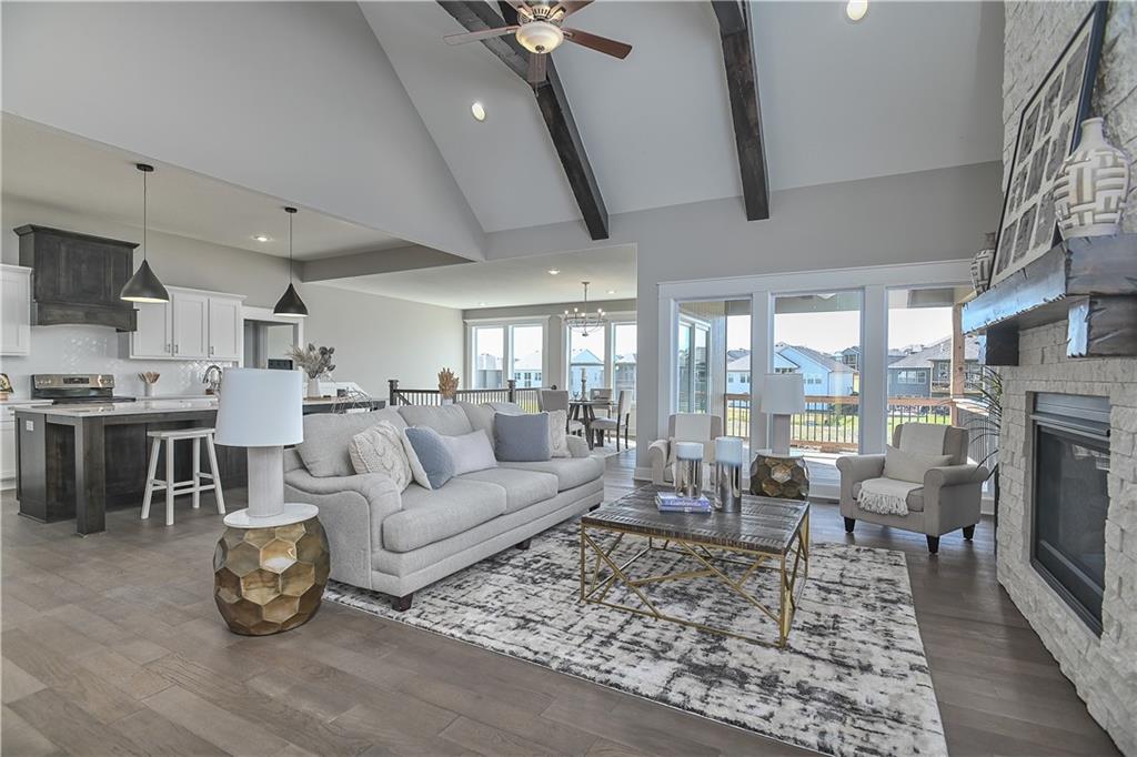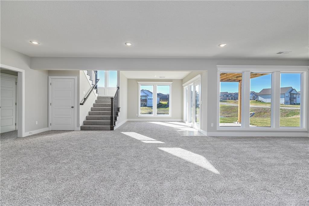 This home is perfectly situated at the end of a quiet cul-de-sac, adjacent to a public golf course. The stunning Reverse 1.5-Story Aspen by Prieb Homes offers a spacious, open floor plan filled with impressive details throughout. Soaring vaulted ceilings with stained beams and striking stonework surrounding the fireplace create a grand first impression upon entry. The kitchen is designed for both entertaining and everyday living, featuring a massive granite center island and ample workspace. The primary suite serves as a relaxing retreat, complete with an adjacent bonus office space and a conveniently located laundry room with built-in cabinetry. The spa-like primary bath includes a custom shower and separate vanities. The finished lower level expands the living space with a wet bar, two additional bedrooms, and a full bathroom—perfect for guests or recreation. Step outside to the large covered 14x12 deck and enjoy peaceful views. Room sizes and taxes are estimated, and some features may not be available in this spec home. Buyer’s agent to verify all information. Some Pictures are of completed plan, decor selections and front elevation orientation to vary.