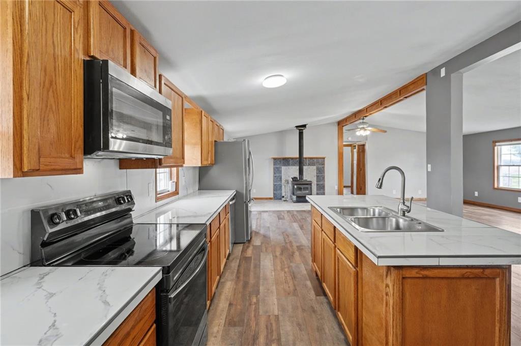 Spacious ranch home featuring an open-concept floor plan, perfect for comfortable everyday living and entertaining. This 3-bedroom, 3 full bathroom home includes a large master suite designed for comfort and relaxation, along with abundant storage throughout. Enjoy the peaceful charm of country living with plenty of room for a few farm animals, all while being just a short drive from town. Ideally situated on a paved road, this property offers both tranquility and convenient access to surrounding areas.