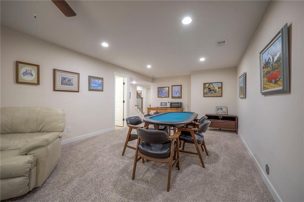 HUGE PRICE REDUCTION with tremendous value - come check it out! Welcome to this like-new ranch/reverse 1.5 home. The open-concept living room, kitchen, and breakfast area create an inviting first impression with vaulted cathedral ceilings, luxury vinyl plank flooring, and expansive windows that fill the space with tons of natural light. The kitchen blends style and function, offering ample room for cooking, gathering, and entertaining, with upgraded granite countertops, a beautiful tile backsplash, painted cabinetry, and stainless steel appliances. Just off the kitchen, the breakfast room features sliding glass doors that lead to the covered patio, while the living room features a stunning stone-front gas fireplace. The primary bedroom is light-filled and refined with vaulted ceilings and box bay windows overlooking the backyard. The en suite bathroom offers a double bowl sink, a beautifully tiled custom walk-in shower with a built-in niche & a granite-topped bench, and a walk-in closet. The main level also includes two additional bedrooms with generous closet space, a second full bathroom, and conveniently located laundry. The builder-finished basement expands the living space with a fourth bedroom that has a large egress window, a third full bathroom, and plenty of room to entertain in the large family room and recreation area. Situated on a generous corner lot, the home offers a sizable patio with both covered and uncovered areas, perfect for future BBQ's and fun! Upgrades/Updates: irrigation system, buried downspouts, landscaping, a vertical garage door opener, and an expansion to the patio.