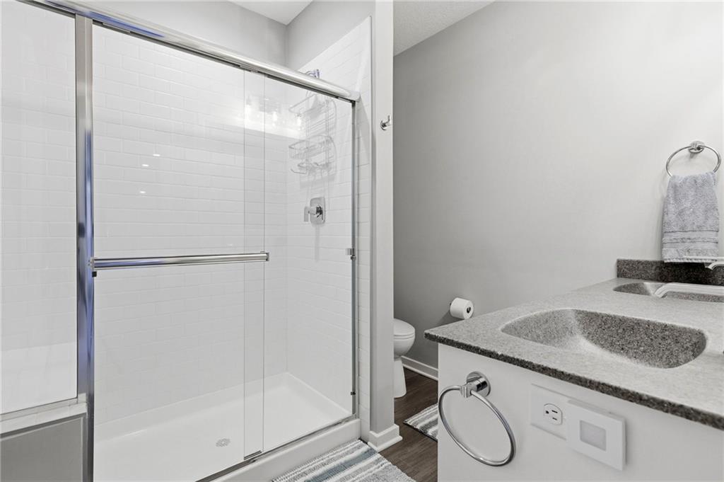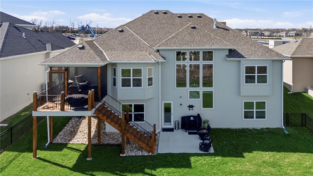Unicorn alert! MULTI-GEN ON GREENBELT! Boulder Hills fully finished walkout lower level built for multi-generational living, backing to a gallery forest greenbelt, loaded with seller upgrades, and Timber Sage Elementary right out your front door. Separate quarters downstairs means parents, adult kids, or long-term guests get their own world: two bedrooms, full bath, 7-ft wet bar, and private walkout entrance. Upstairs, the main level delivers a dramatic stone fireplace, wall of windows framing the trees, quartz kitchen island, screened deck, and a main floor primary suite with soaking tub and double vanities. Seller upgrades that set this apart: epoxy garage floors, garage sink, second opener, built-in shelving & workbench, extended deck with backyard steps, active radon mitigation, and metal fencing with 3 gates. Boulder Hills amenities include clubhouse, party room, pickleball, putting green, pool, playground and trails, all anchored by one of the best greenbelt lots in the subdivision. Impeccably maintained. Truly move-in ready. Greenbelt lots with this layout and these upgrades do not come up twice. Information deemed reliable but not guaranteed. Buyer to verify all information.